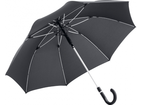 Stylischer Automatik-Stockschirm in mittlerer Größe mit farbigem Stock und farbigen Schienen. Komfortable Automatik-Funktion zum schnellen Öffnen, hochwertiges Windproof-PLUS-System für eine maximale Gestell-Flexibilität bei stärkeren Windböen, flexible Fiberglasschienen, stabiler Stahlstock mit farbiger Kunststoffummantelung, Polyester-Pongee Bezugsmaterial aus recycelten Kunststoffen, umweltfreundlich dank original waterSAVE® Bezugsmaterial, mit waterSAVE®-Label auf dem Schließband (bei neuen Chargen), formschöner Soft-Feel-Rundhakengriff mit farbigen Griffringen, integrierter Auslösetaste und Werbeanbringungsmöglichkeit. Auch als Taschenschirm (Art. 5084, 5484, 5584) und Gästeschirm (Art. 2384) erhältlich. Ausgezeichnet mit dem Promotional Gift Award 2016.