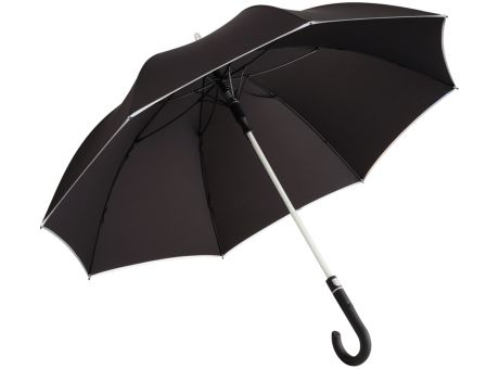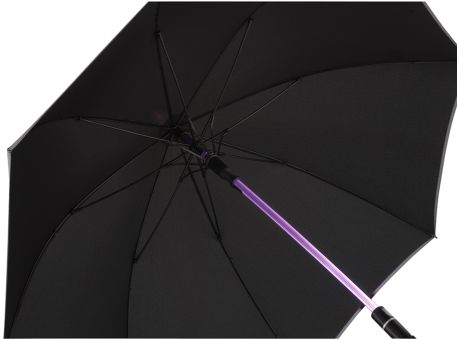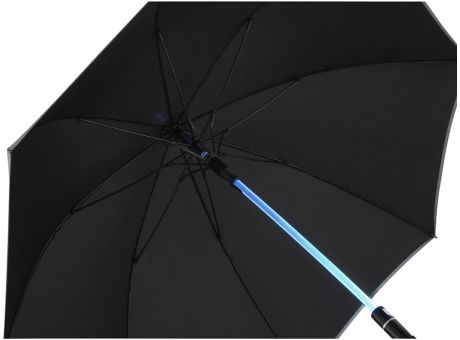 Automatik-Stockschirm in mittlerer Größe mit variabler LED-Beleuchtung. Windproof-System. Automatisch öffnend, transparenter Stock mit LED-Beleuchtung. Soft-Touch-Rundhakengriff mit integrierter silberner Auslösetaste sowie Griffring und Werbeanbringungsmöglichkeit. Micro-USB Ladeanschluss. Taste zur Auswahl der Leuchtfarbe oder Farbwechsel. Inkl. Ladekabel.