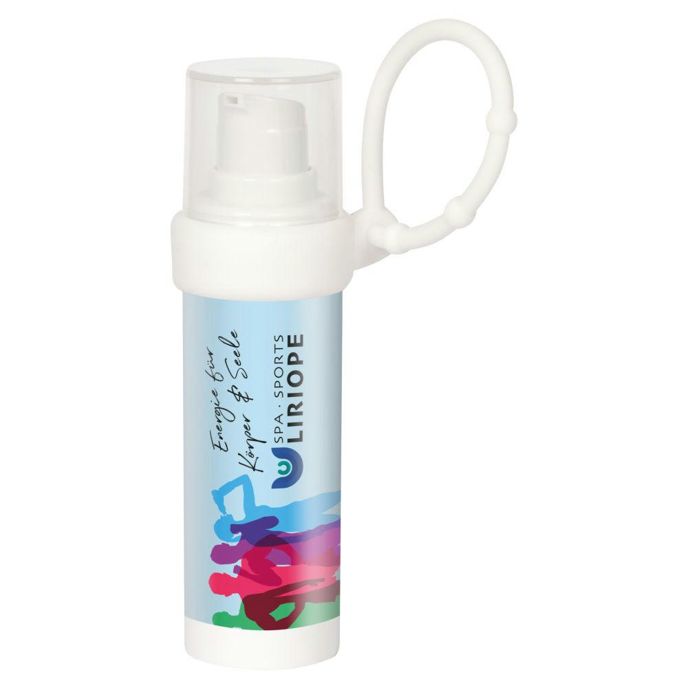 30 ml Handcreme-Spender mit Airless-Technologie. Gegen Aufpreis auch mit zusätzlicher Silikonhalterung "Loopi" erhältlich. Erhältlich mit verschiedenen Füllungen: * Aloe Vera Handcreme * Hyaluron Pflegegel * Sonnenschutzcreme Sensitiv LSF 50 * Made in Germany