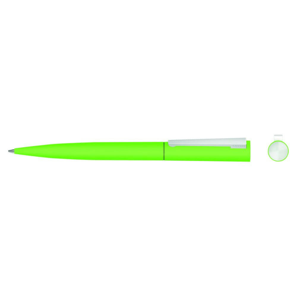 Metall-Drehkugelschreiber mit Softtouch-Gehäuse, gefederter Metallclip und Stopfen matt verchromt.