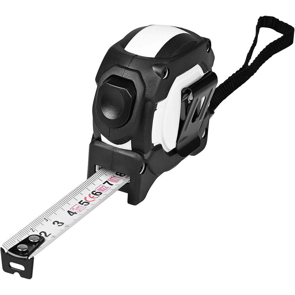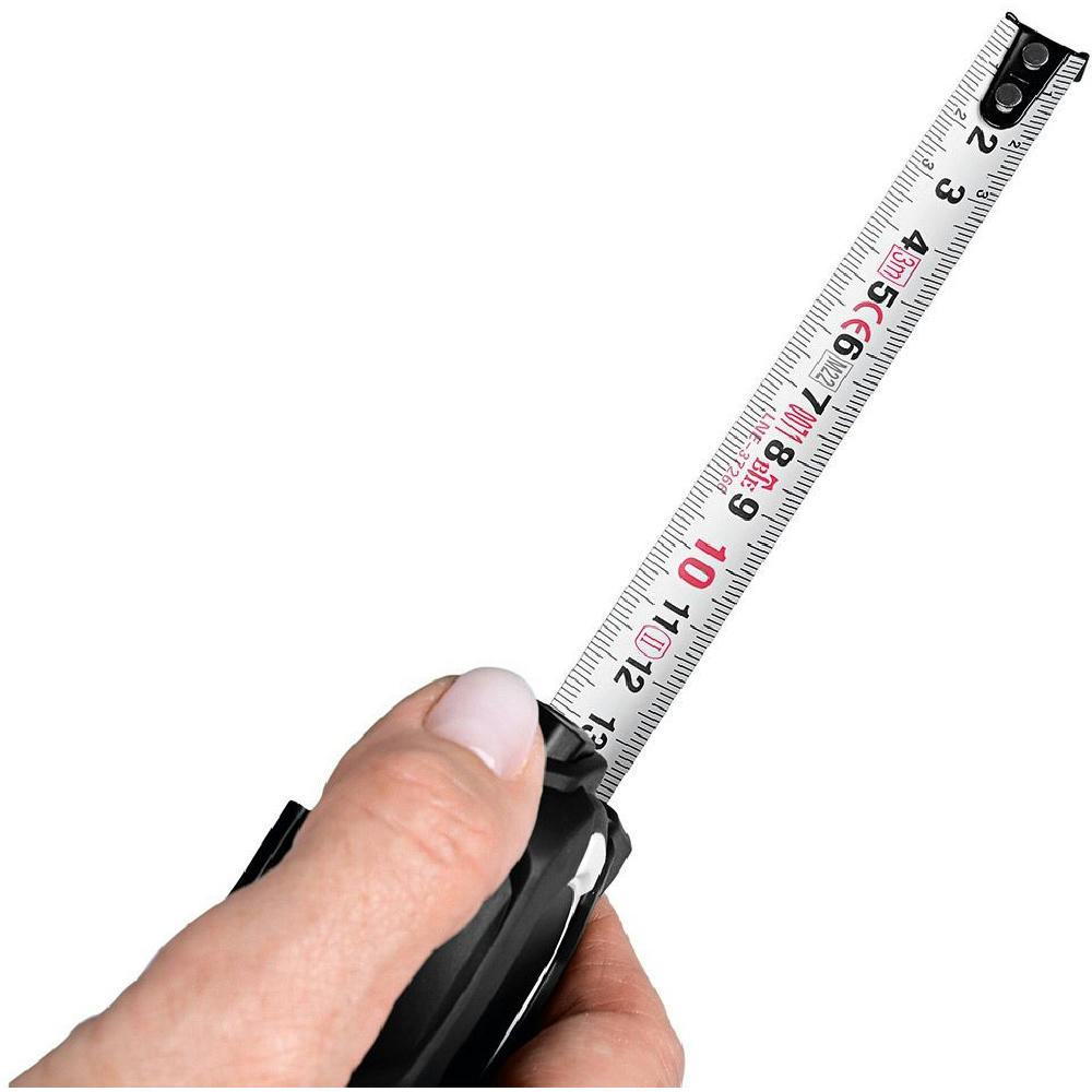 Stabiles und robustes Qualitäts-Bandmaß aus schlagfestem 2-Komponenten-Gehäuse. Durch die Aussparung im Haken kann das Stahlband in einen Nagel oder eine Schraube eingehängt werden. Knickfestigkeit: 1,60 m. Skalierung: cm, einseitig. Genauigkeitsklasse: EG-Klasse II. Ausstattung: dynamischer Bandrücklauf, beweglicher Bandanfangshaken, Gürtelclip und Handschlaufe.Verpackung: schwarze Geschenkverpackung.