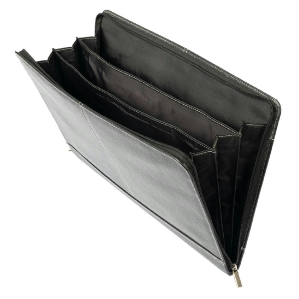 Mit Reißverschluss, 3 separate Innenfächer mit Organizereinteilung und Reißverschlussfach, Steckfach außen.