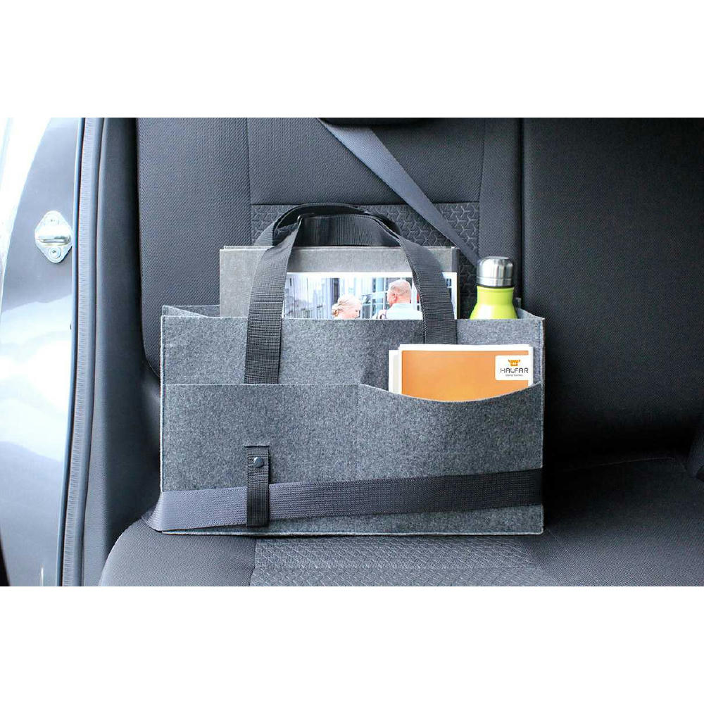 Organizer mit großem Hauptfach; flaches Einsteckfach, Reißverschluss-Einsteckfach, zwei Fixierungsschlaufen z.B. für Getränkeflasche, Visitenkartenfach, drei Einsteckfächer innen; drei Einsteckfächer außen; längenverstellbare Tragegurte; Befestigungslasche z.B. für den Autogurt.