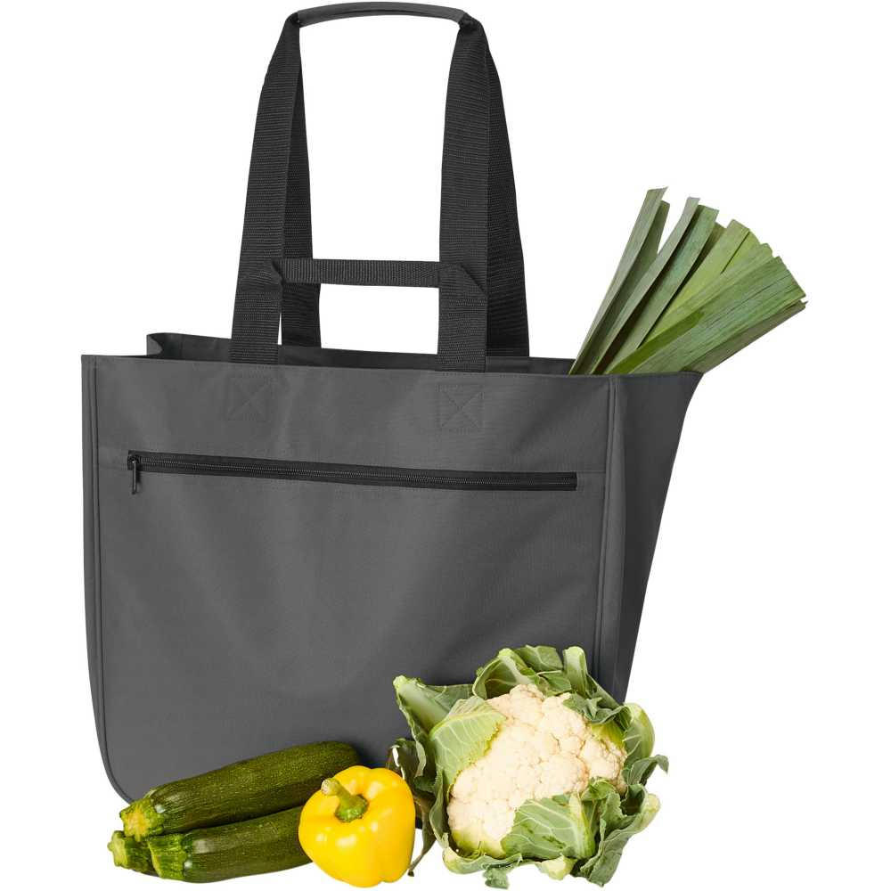 flexibler, geräumiger Shopper für viele Einsatzwecke; großes Hauptfach mit Bodenfüßen; Reißverschluss-Vortasche; Tragesystem mit Doppelgriffen und gepolsterte Griffmanschette für besten Tragekomfort