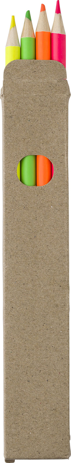 Buntstifte-Set mit 4 Farbstiften (gelb, orange, rosa und grün) in Kartonbox.