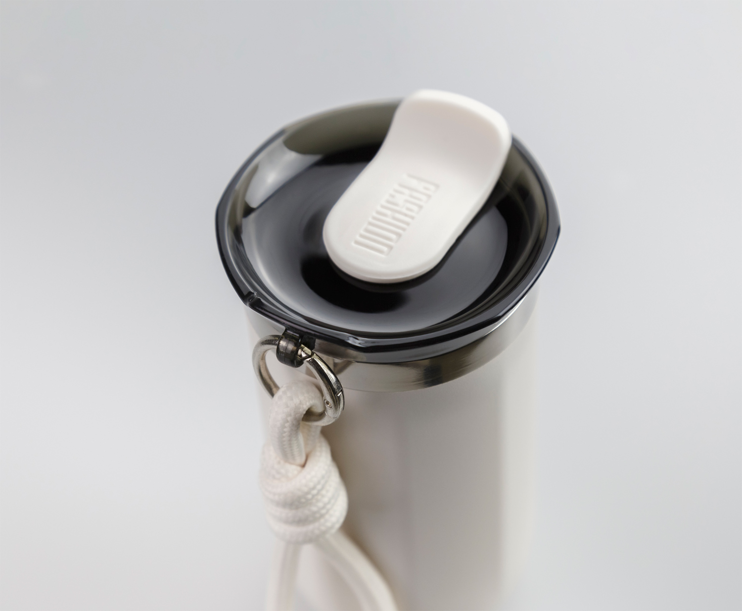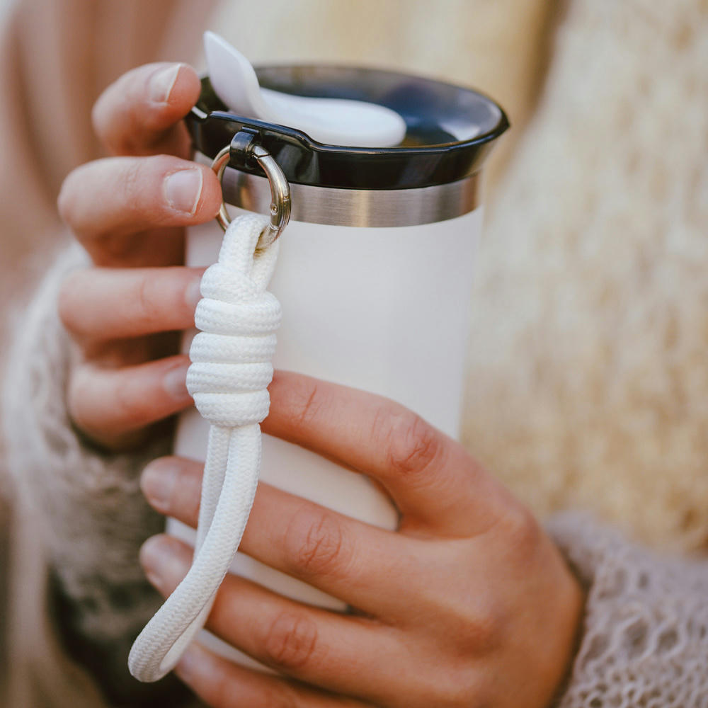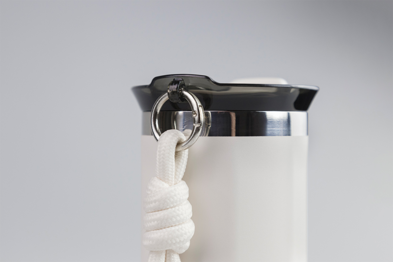Doppelwandiger Trinkbecher aus Edelstahl mit elegantem weißem Finish und facettierten Seiten. Großer Schraubdeckel, der ein einfaches Befüllen direkt an der Kaffeemaschine ermöglicht, Seilschlaufe als Tragegriff am Deckel, Silikonverschluss. Die doppelwandigen Vakuum-Isolierung aus Edelstahl hält das Getränk – ob heiß oder kalt – stundenlang auf der idealen Temperatur.