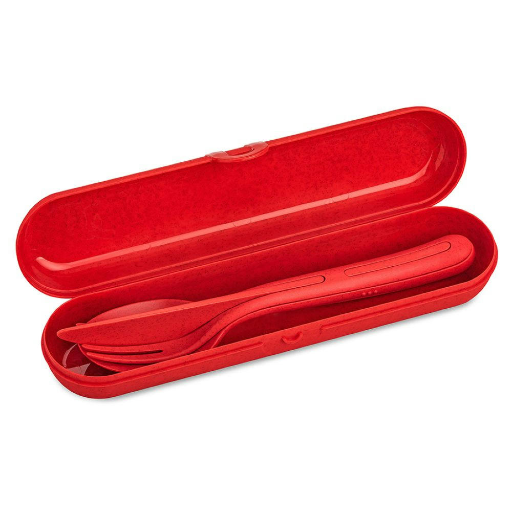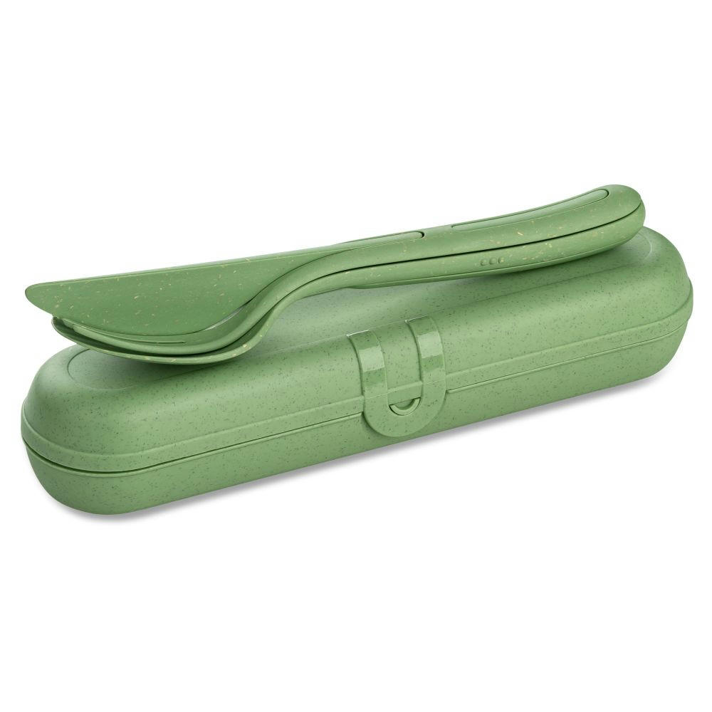 Das Dreamteam für unterwegs. Das KLIKK Besteckset kommt in einer schicken Box, mit der sich Messer, Gabel und Löffel sicher und sauber von A nach B transportieren lassen. Auch nach der Mahlzeit sind hier alle Besteckteile hygienisch verstaut. Die schlanke Box hat einen praktischen Clipverschluss und findet in jeder Tasche Platz.
