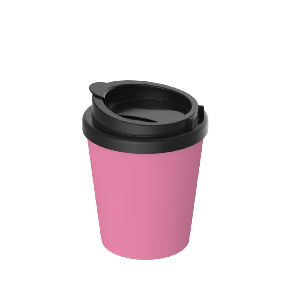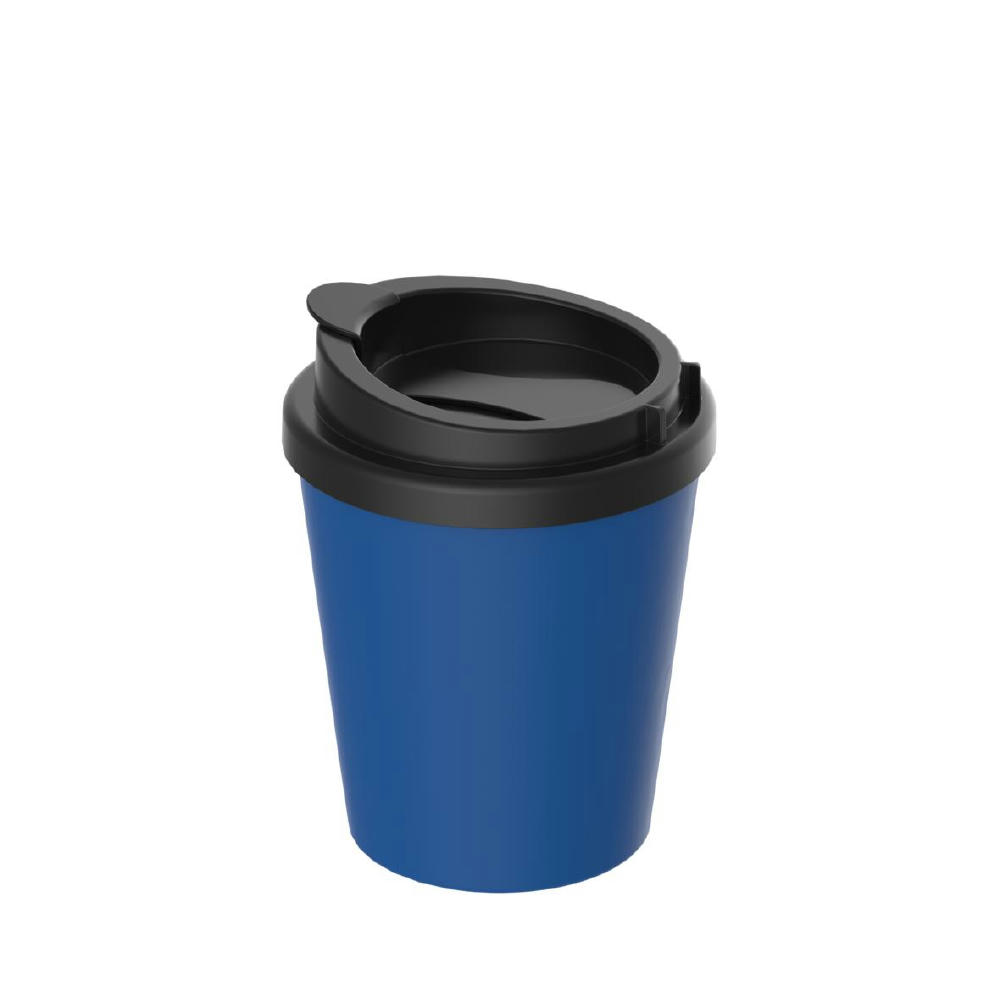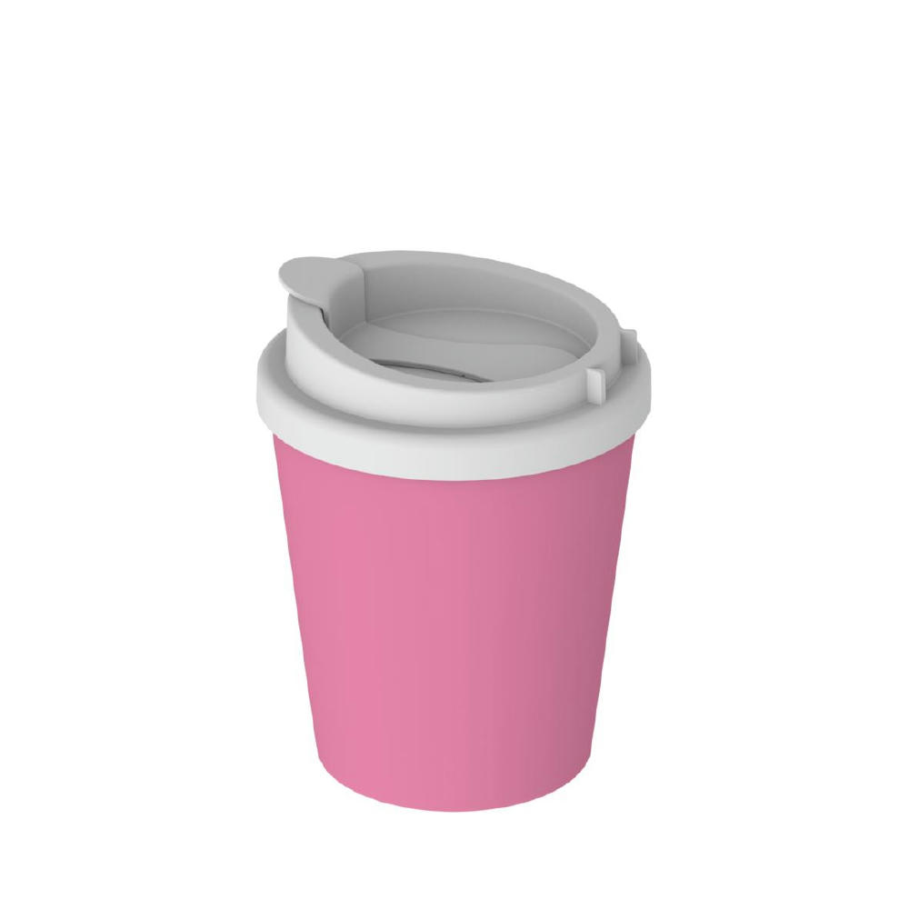 Kompakter To-Go-Becher aus doppelwandigem Kunststoff inkl. aufsteckbarem Deckel mit Trinköffnung. Der Deckel lässt sich mithilfe der flexiblen Lasche verschließen. Zudem lässt sich diese auch am Deckelrand befestigen. Passt in alle gängigen Getränkehalter in PKW. Füllmenge: 0,25 Liter.