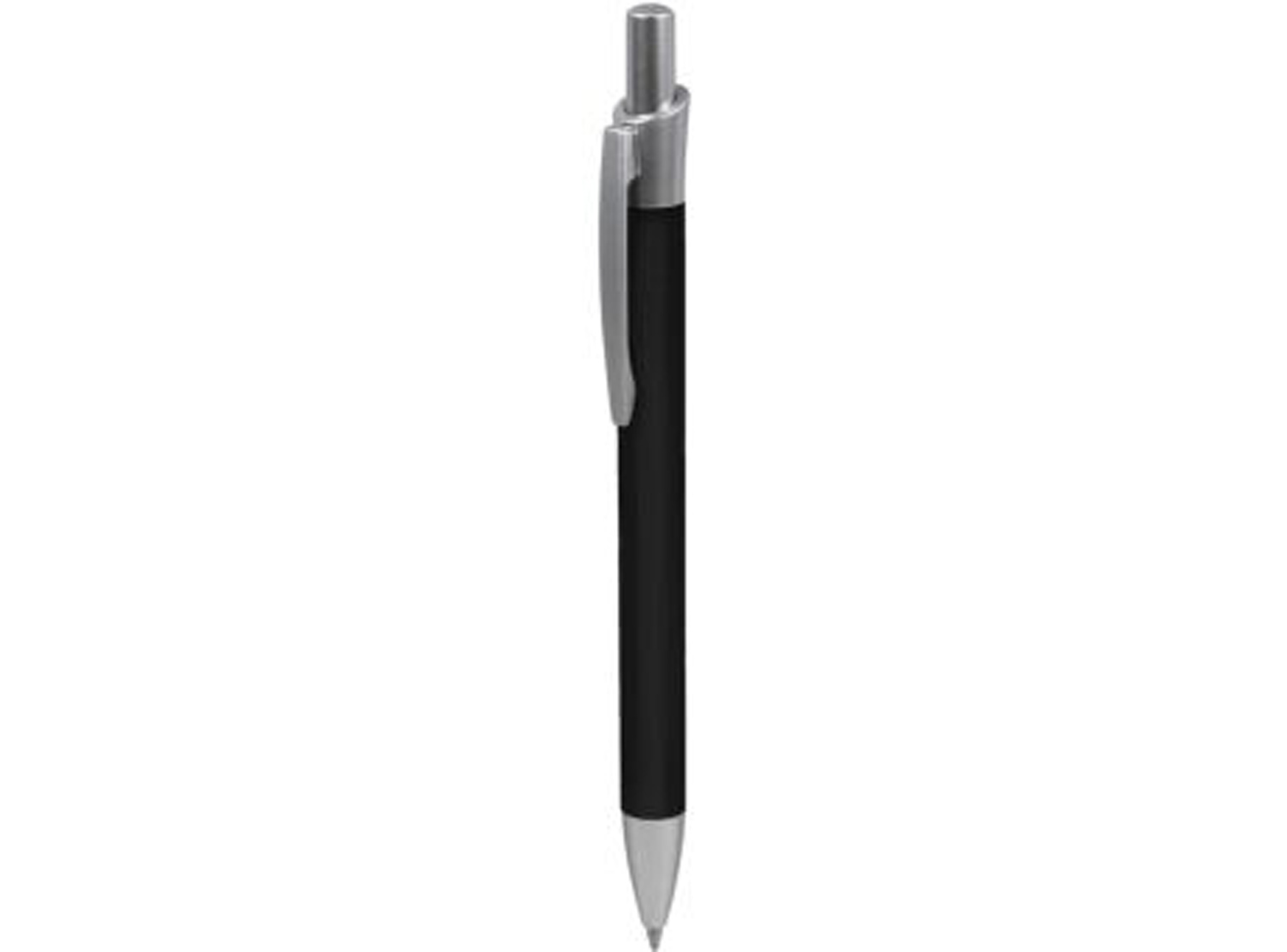 "LISSABON" Metall-Druckkugelschreiber rot/schwarz Spitze, Drücker und Clip schwarz, Gebürstete Oberfläche. Produktdetails: Artikelgröße: 14,3 cm Durchmesser: 1 cm Oberfläche: Gebürstetet Material: Aluminium Mine: Großraummine blauschreibend