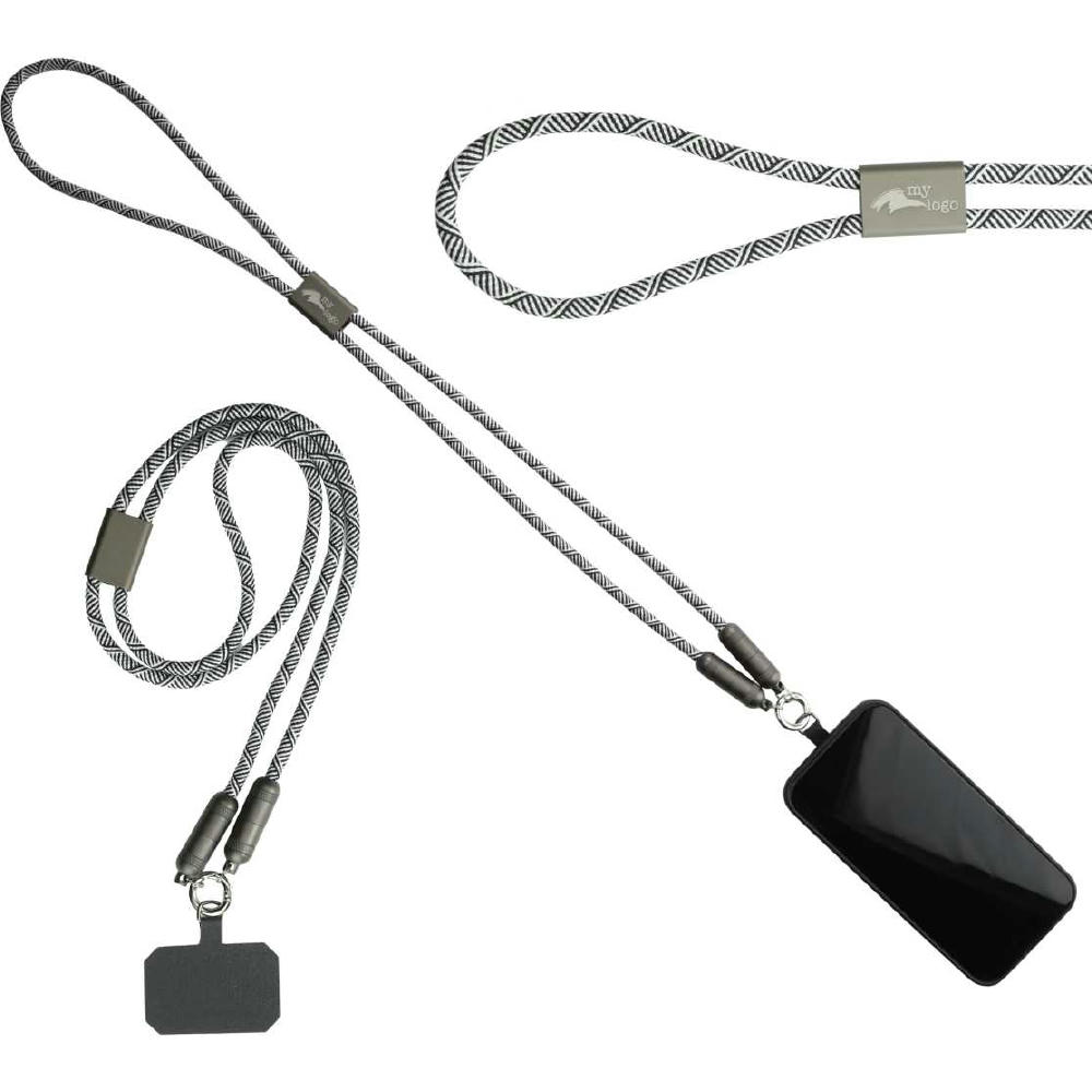 Stabiles Premium Lanyard-Ladekabel mit Smartphone Halterung. USB Type-C auf Type-C Anschluss. Schnelles Laden und Datentransfer mit bis zu 100W.
