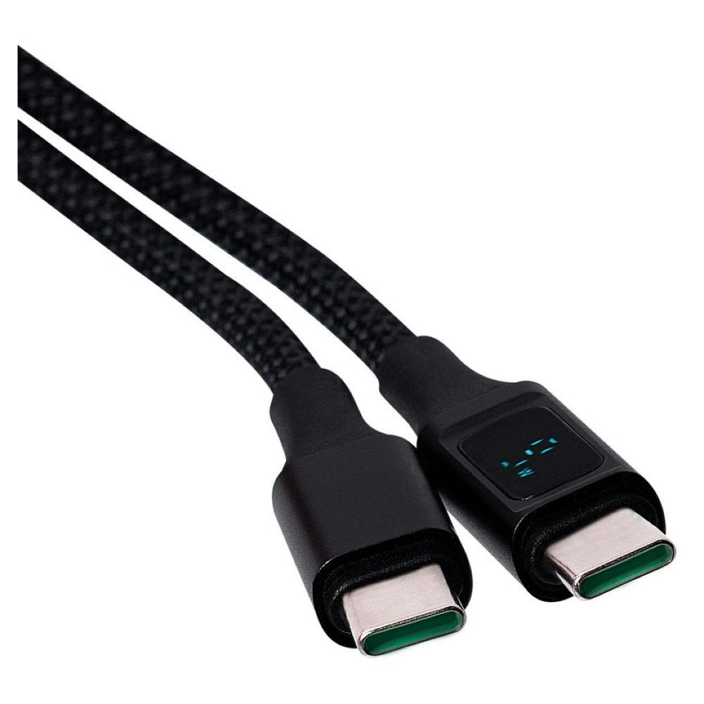 Ladekabel mit bis zu 100W Kapazität. Datenübertragung bis zu 480 mbps. Auf der Digitalanzeige kann abgelesen werden mit wieviel Watt das Gerät geladen wird. Stabile, gewobene Nylonummantelung. Länge 1 m