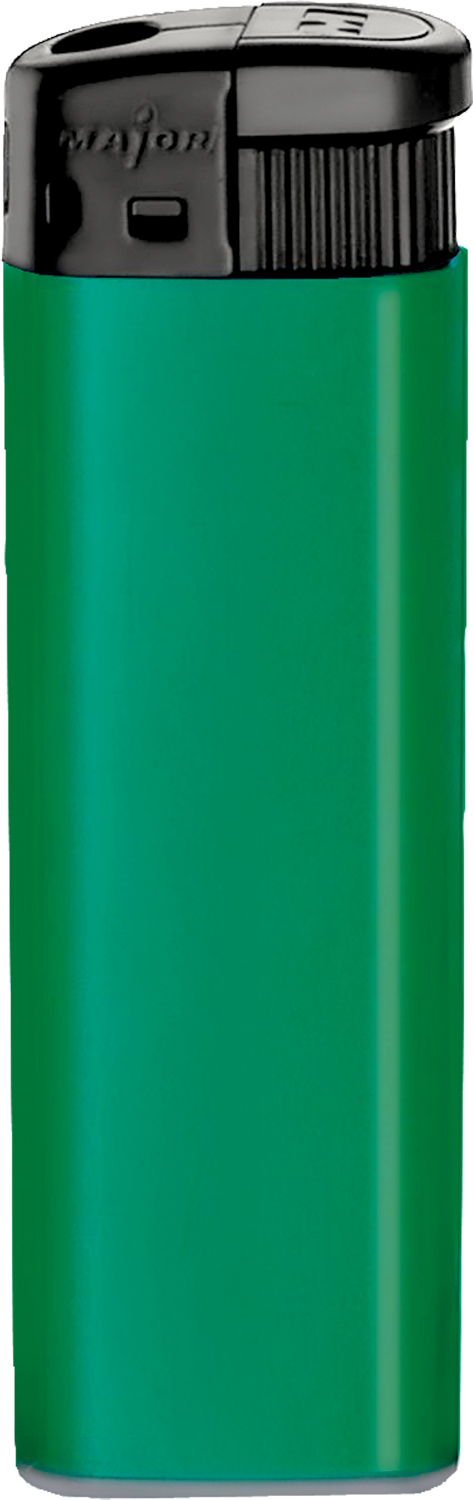 MAJOR Elektronik-Einwegfeuerzeug grün, Produktdetails: Artikelgröße: 2,3 x 8 cm Kopf: schwarz Körper: grün Oberfläche: hardcolor Material: Kunststoff Füllung: ca. 80-85 Prozent
