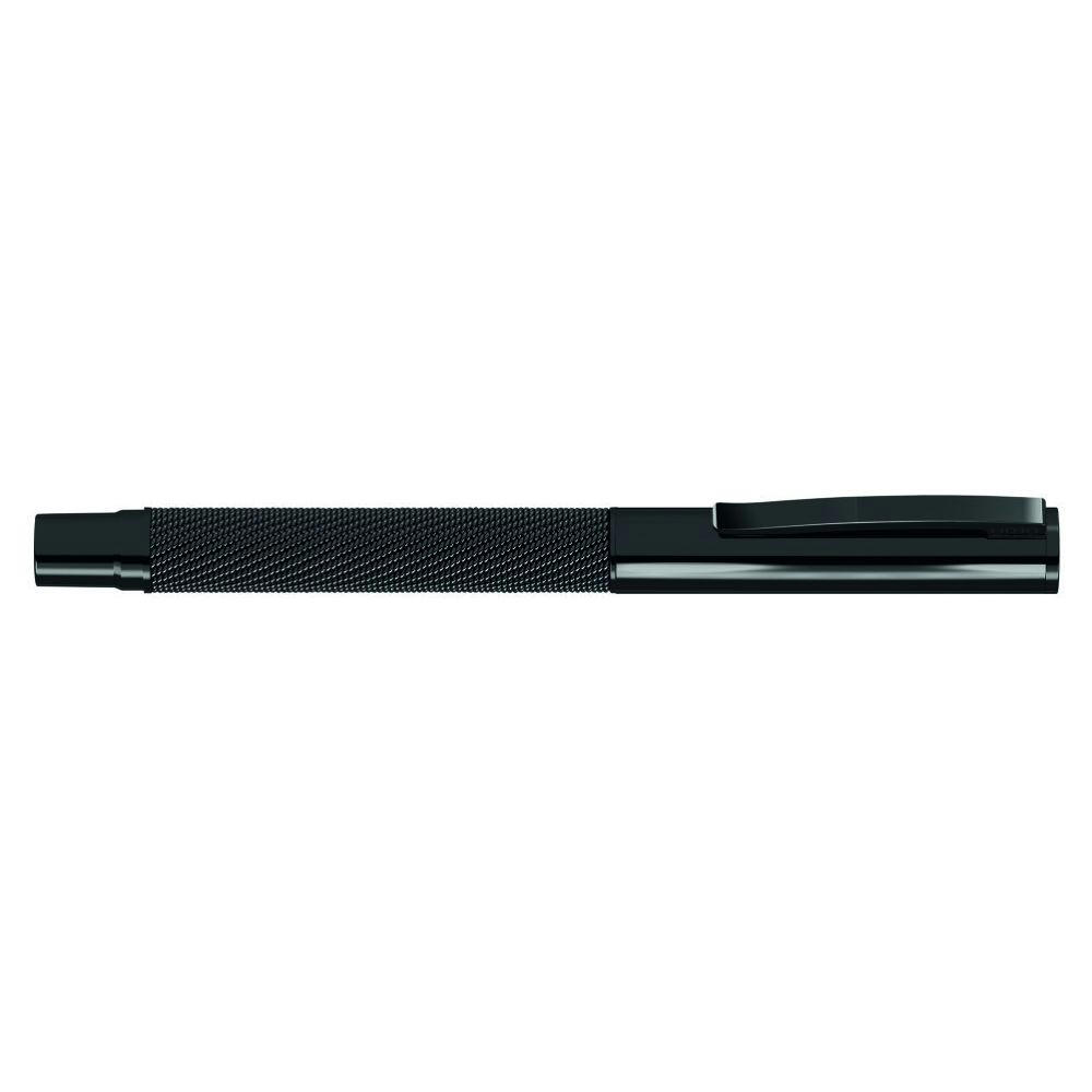 Metall-Rollerball glänzend lackiert mit gefedertem Metallclip und Schaft mit integriertem Meshband.