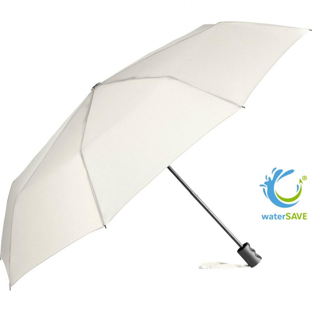 Nachhaltiger Handöffner-Taschenschirm mit Bezug aus recycelten Kunststoffen. Einfache Handhabung durch Sicherheitsschieber, hochwertiges Windproof-System für eine maximale Gestell-Flexibilität bei stärkeren Windböen, STANDARD 100 by OEKO-TEX® zertifiziertes Polyester-Pongee Bezugsmaterial aus recycelten Kunststoffen, farbabhängig auch mit waterSAVE® Bezugsmaterial erhältlich, Griff aus wiederverwendetem Kunststoff-Material mit Werbeanbringungsmöglichkeit