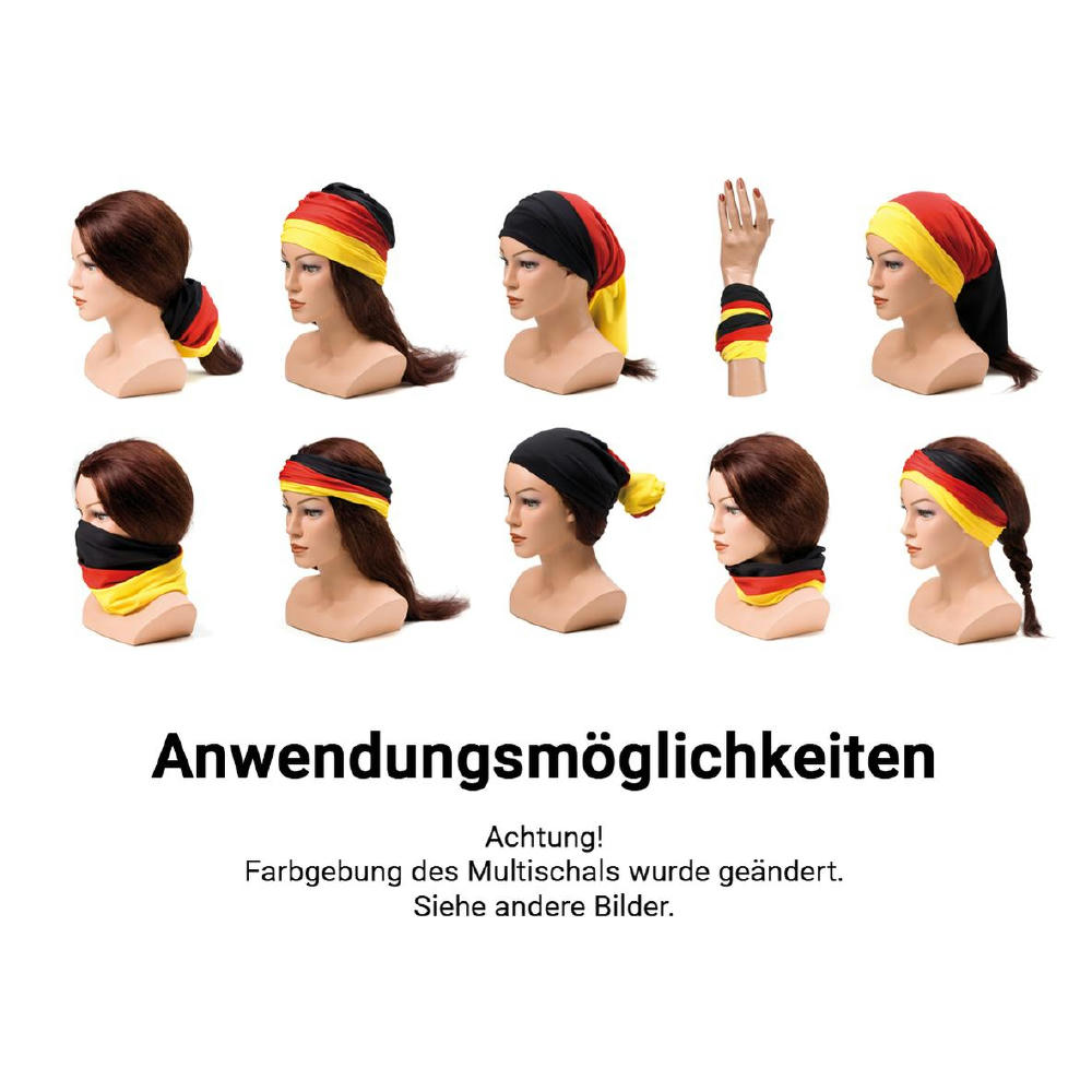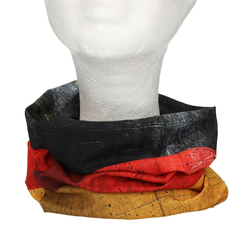 Trendiges Multifunktionstuch und Eyecatcher zugleich. Multiscarf im Deutschland-Design, mit horizontal verlaufenden Streifen. Je nach Gebrauch tragbar als Stirnband, Mütze, Schal u.v.m.