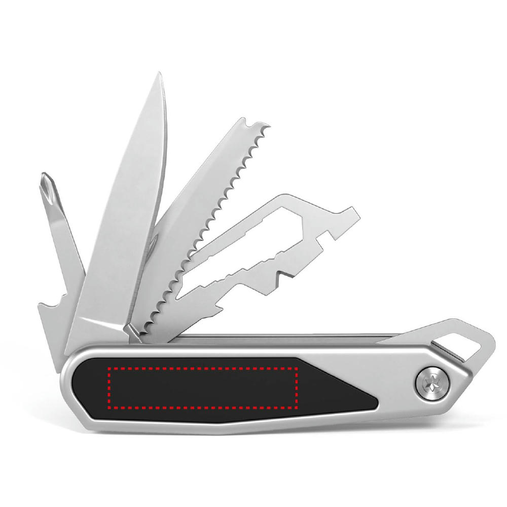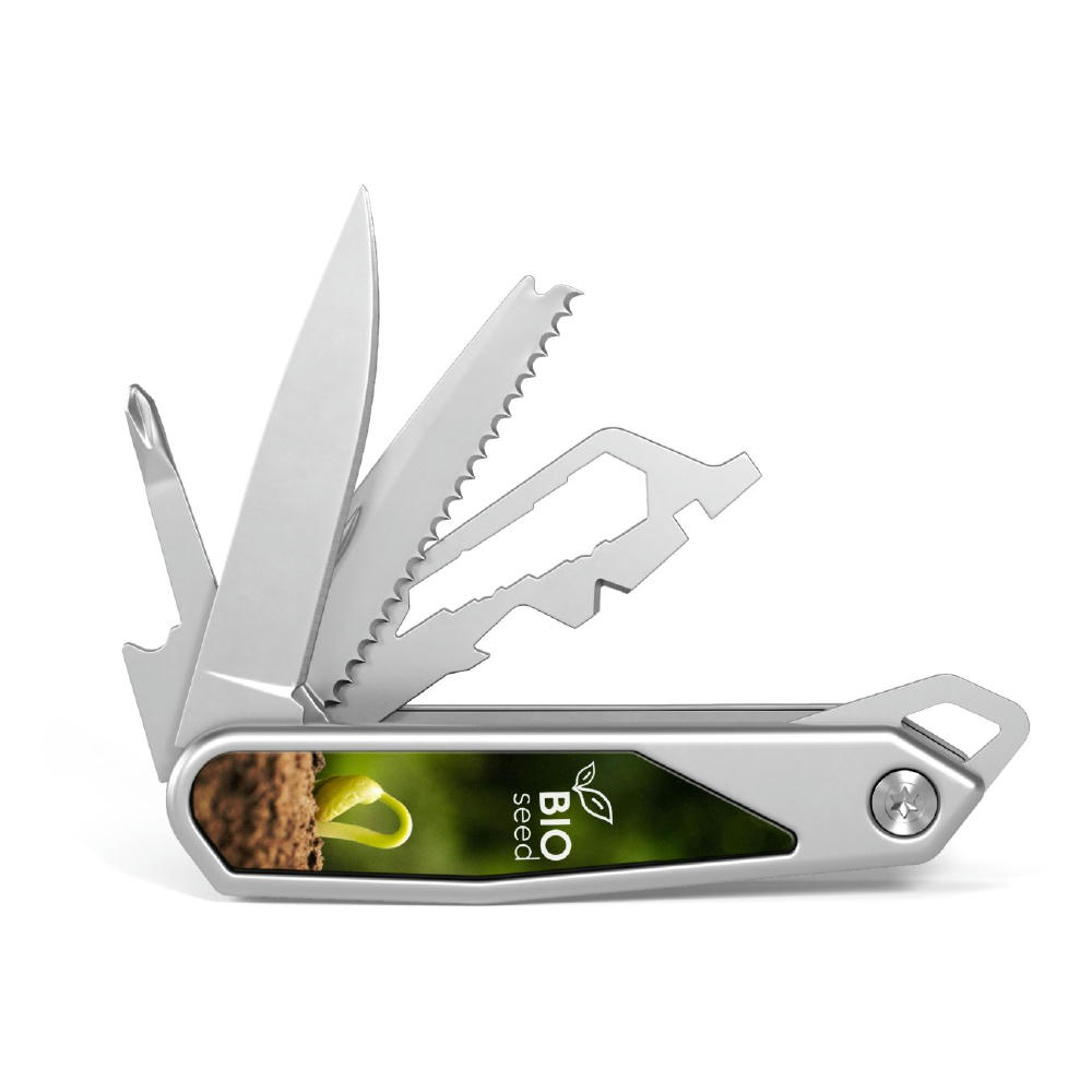 PROKNIFE 15 ist die kompakte moderne Neuinterpretation des klassischen Taschenmessers mit 15 Funktionen: Klinge, Säge, Kapselheber, Kreutzschlitzschraubendreher, Schlitzschraubendreher, Fahrradspeichenschlüssel, Sechskantschlüssel (5), Vielzahnschlüssel (2), Kabelabzieher, Nagelzieher.