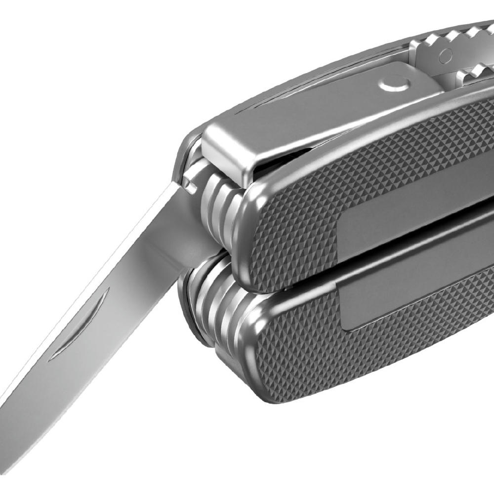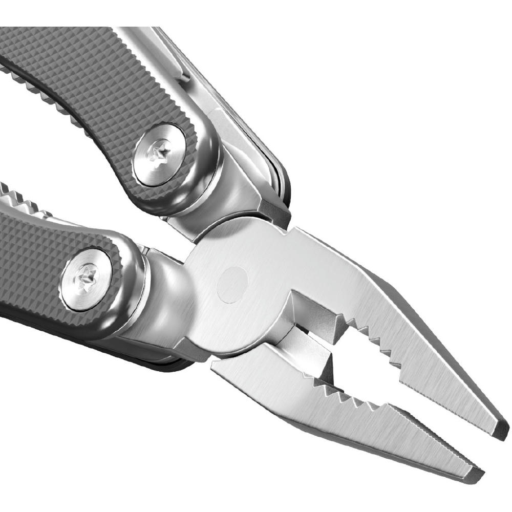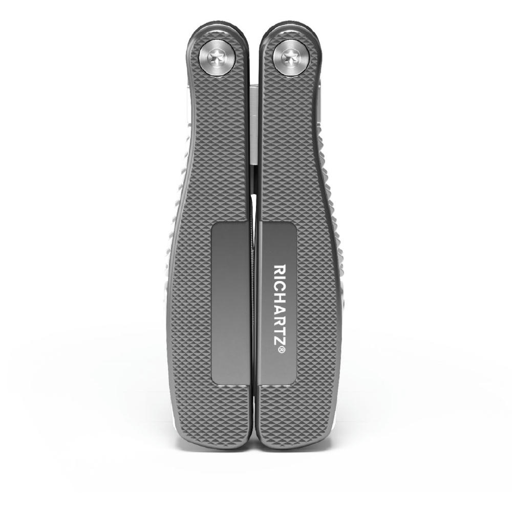 Das WORKER tool von RICHARTZ® ist ein Blickfang und Alltagshelfer zugleich. Die fein strukturierte Oberfläche der Aluminium Griffschalen bietet optimalen Halt bei der Arbeit und die Safety-Lock Verriegelung der einzelnen Funktionsteile gewährt höchste Arbeitssicherheit. Mit seiner kräftigen, gegossenen Zange, der scharfen der scharfen Allzweckklinge und den vielen weiteren Funktionen ist das WORKER tool für jeden Einsatz gewappnet.