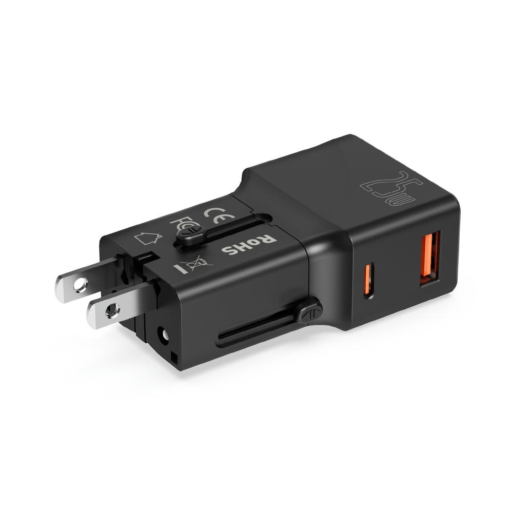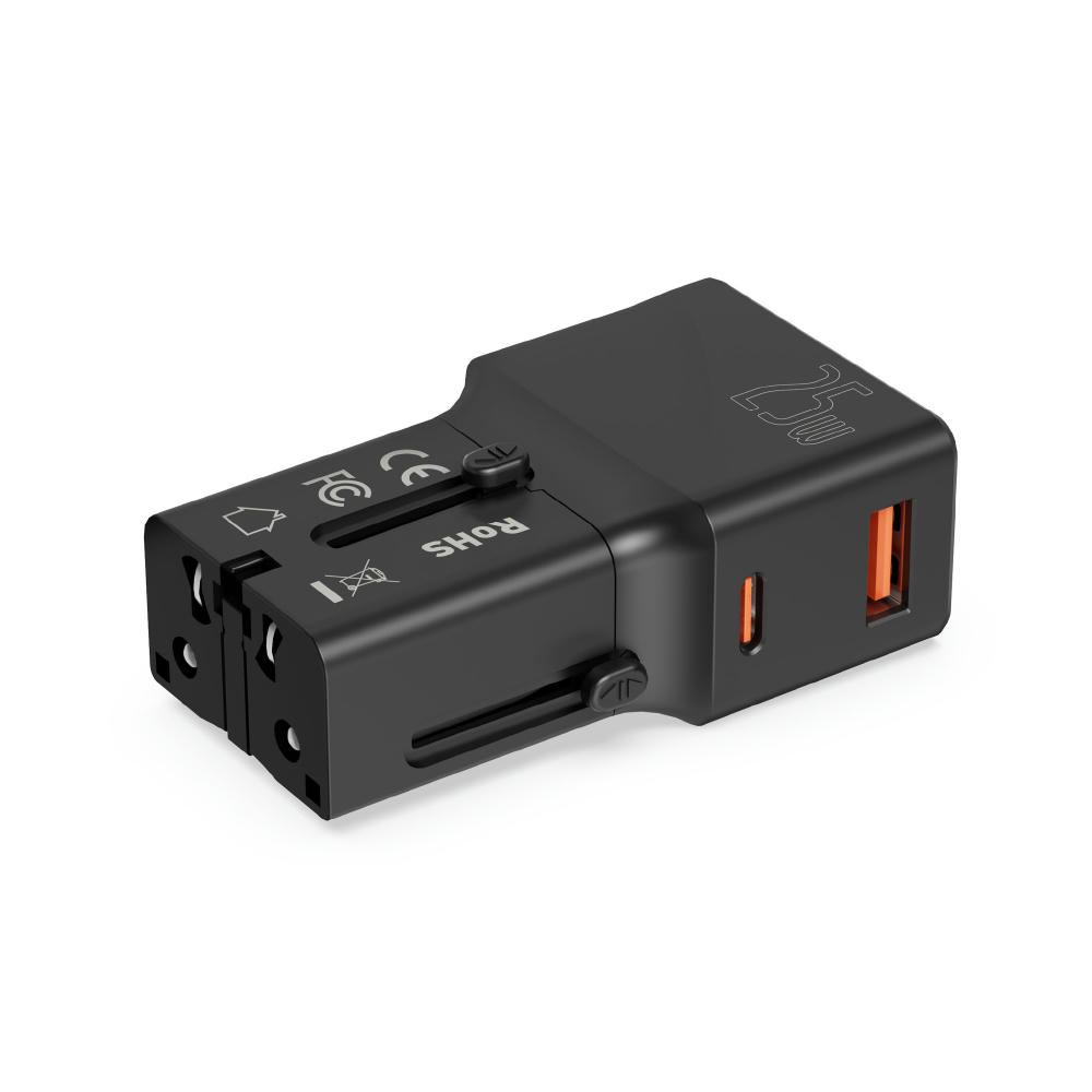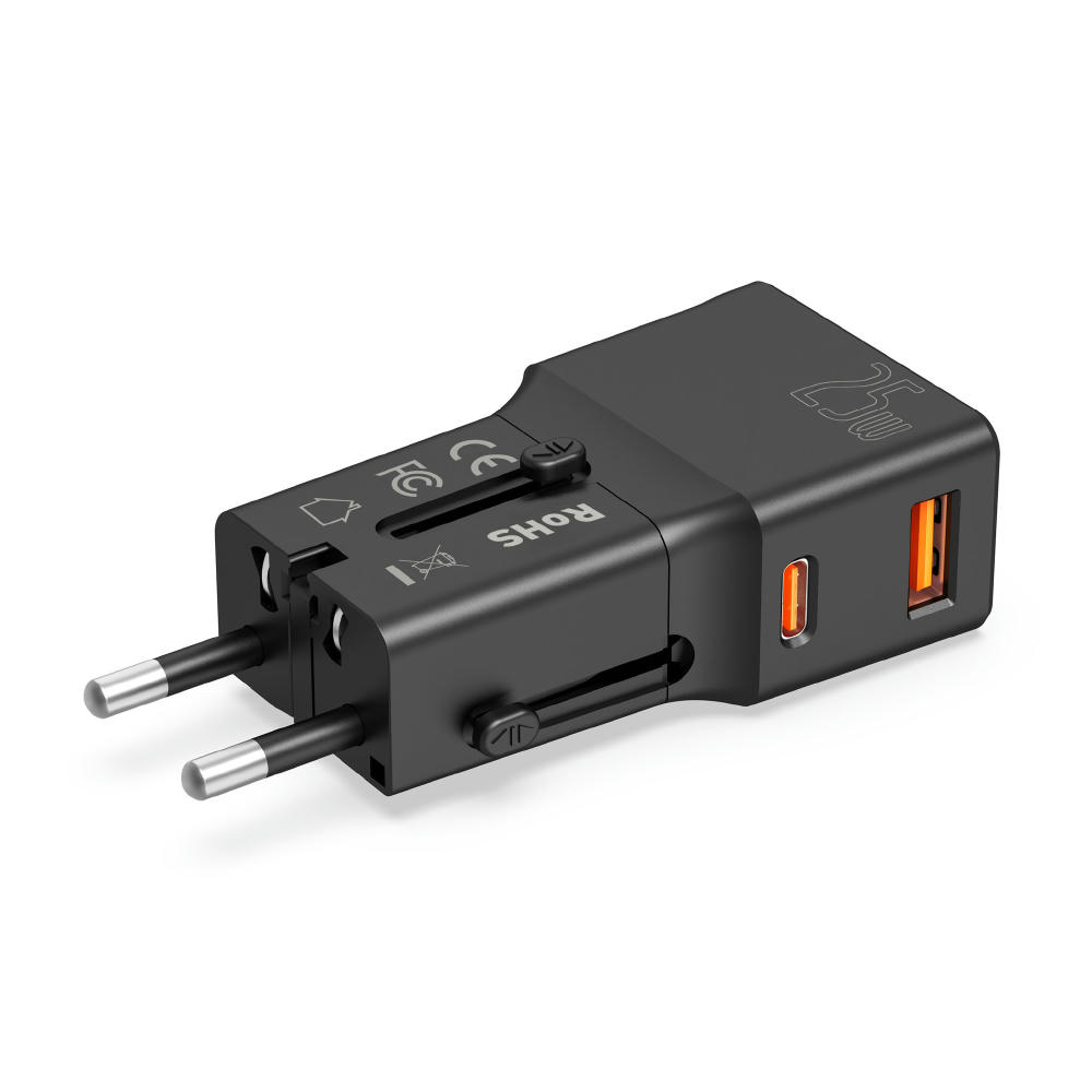 Dieser kompakte, weltweit einsetzbare Reiseadapter ist die perfekte Lösung für Reisende. Er ist einstellbar und kompatibel mit Steckdosen in über 200 Ländern. Dank Fast Charging (25W) Technologie und zwei USB-Anschlüssen können Sie mehrere Geräte gleichzeitig schnell und sicher aufladen. Ideal für Smartphones, Tablets, Laptops und andere USB-fähige Geräte. Kompakt, zuverlässig und unverzichtbar für Ihre Reisen! Aufgrund seiner kompakten Größe kann der Reiseadapter auch als normaler Netzstecker verwendet werden. Anschlüsse: USB-C, USB-A