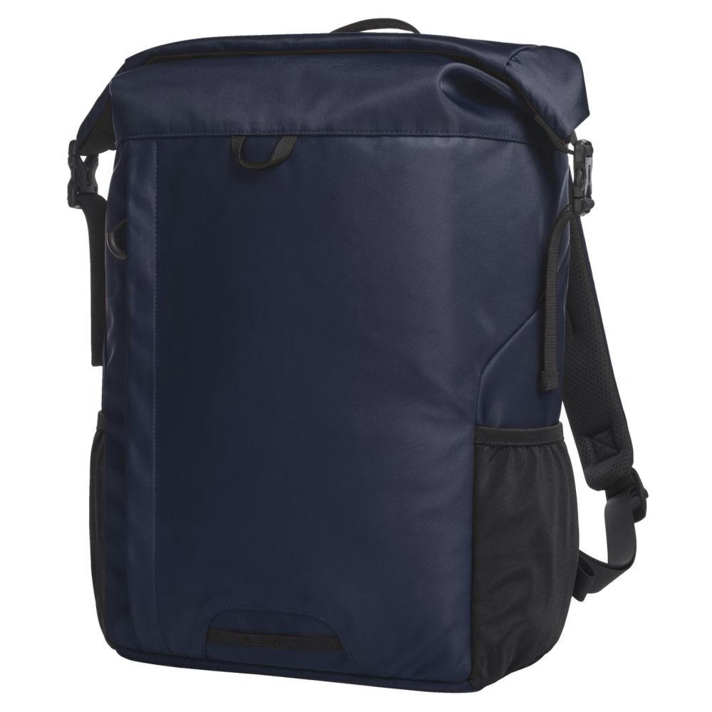 hochwertiger Rucksack; Reißverschluss-Hauptfach mit seitlichen Steckverschlüssen; große, seitlich zugängliche Reißverschluss-Vortasche; seitliche Netz-Taschen; LED-Fahrradlicht-Befestigungsmöglichkeit; Loop-Band auf der Front; großes gepolstertes Einsteckfach, flaches Einsteckfach und Stiftschlaufen innen; rückseitig Befestigungsschlaufe für Trolley-Gestänge; gut gepolstertes Tragesystem; Handgriff