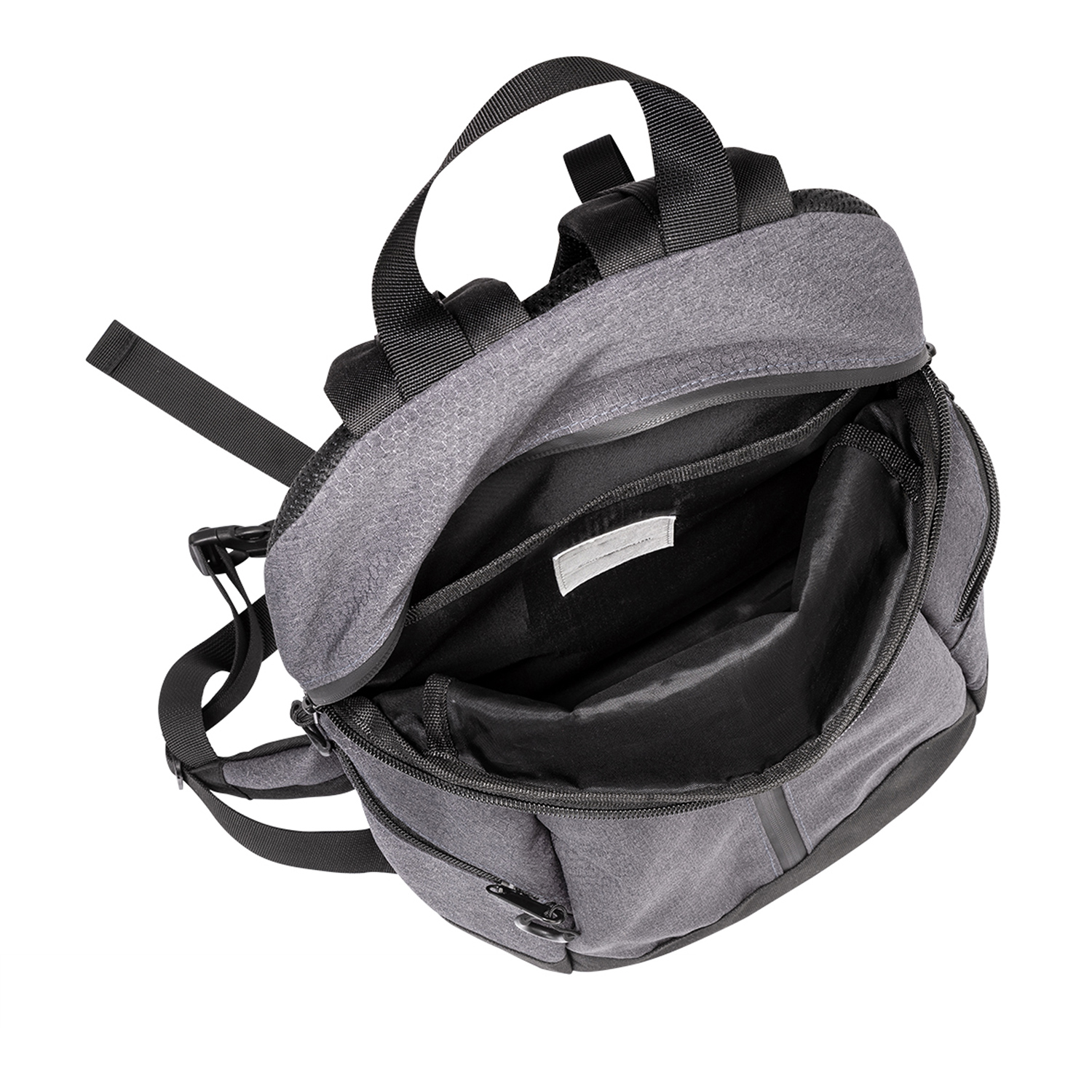 Geräumiges Hauptfach Innen separates Laptop Fach passend für 13" Vortasche mit senkrechtem Reißverschluss 2 Seitentaschen mit schräg laufendem Reißverschluss Komfortables gepolstertes Rückenteil 20mm Schultergute 1,5 mm dick und 6 cm breit Bauchgurt mit Klickverschluß Top-Handschlaufe zum Aufhängen Volumen ca. 15l.