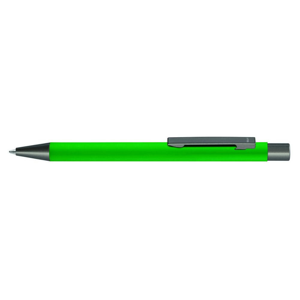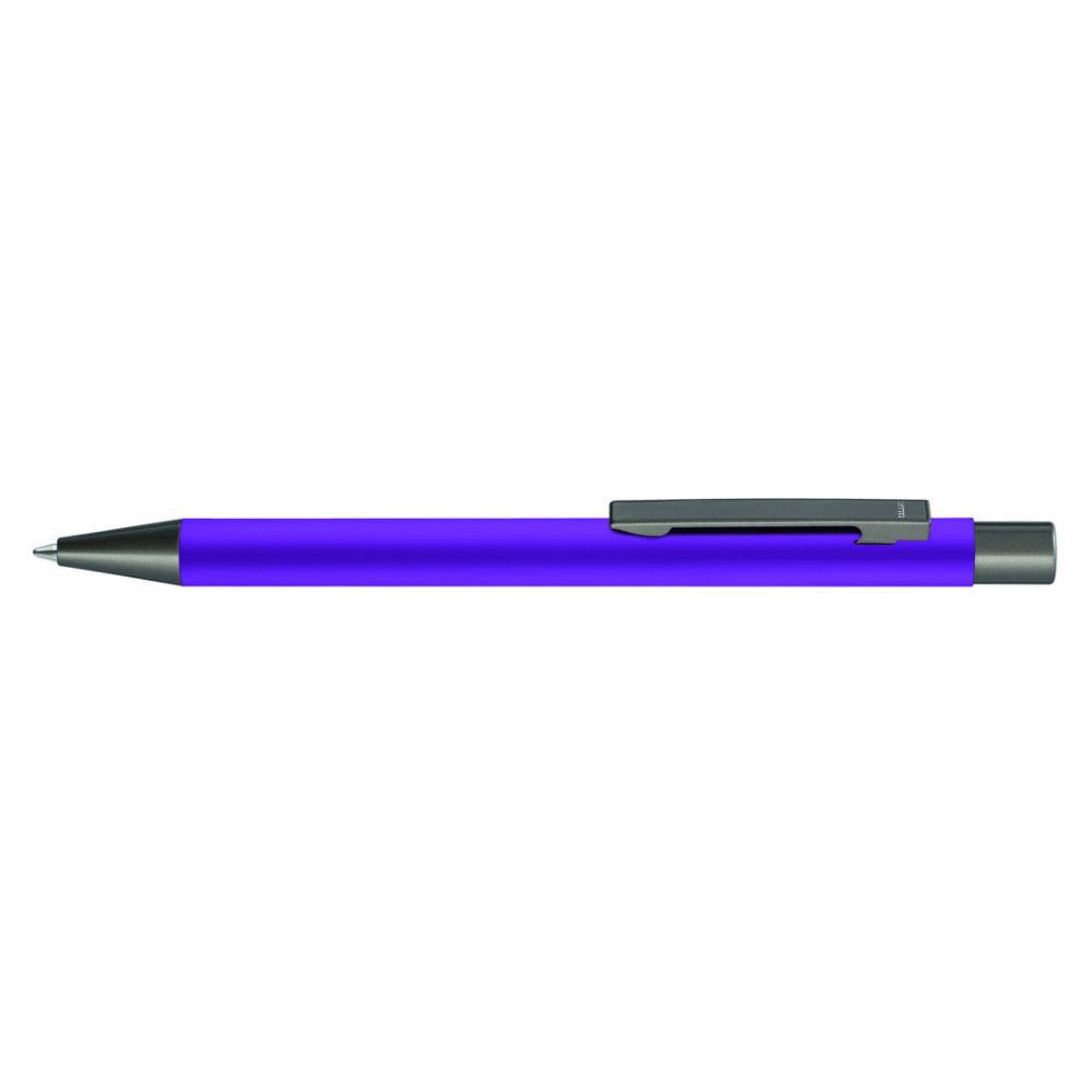 Metall-Druckkugelschreiber mit Softtouch-Gehäuse. Metallclip, Metallspitze und Drücker GUN metallic.