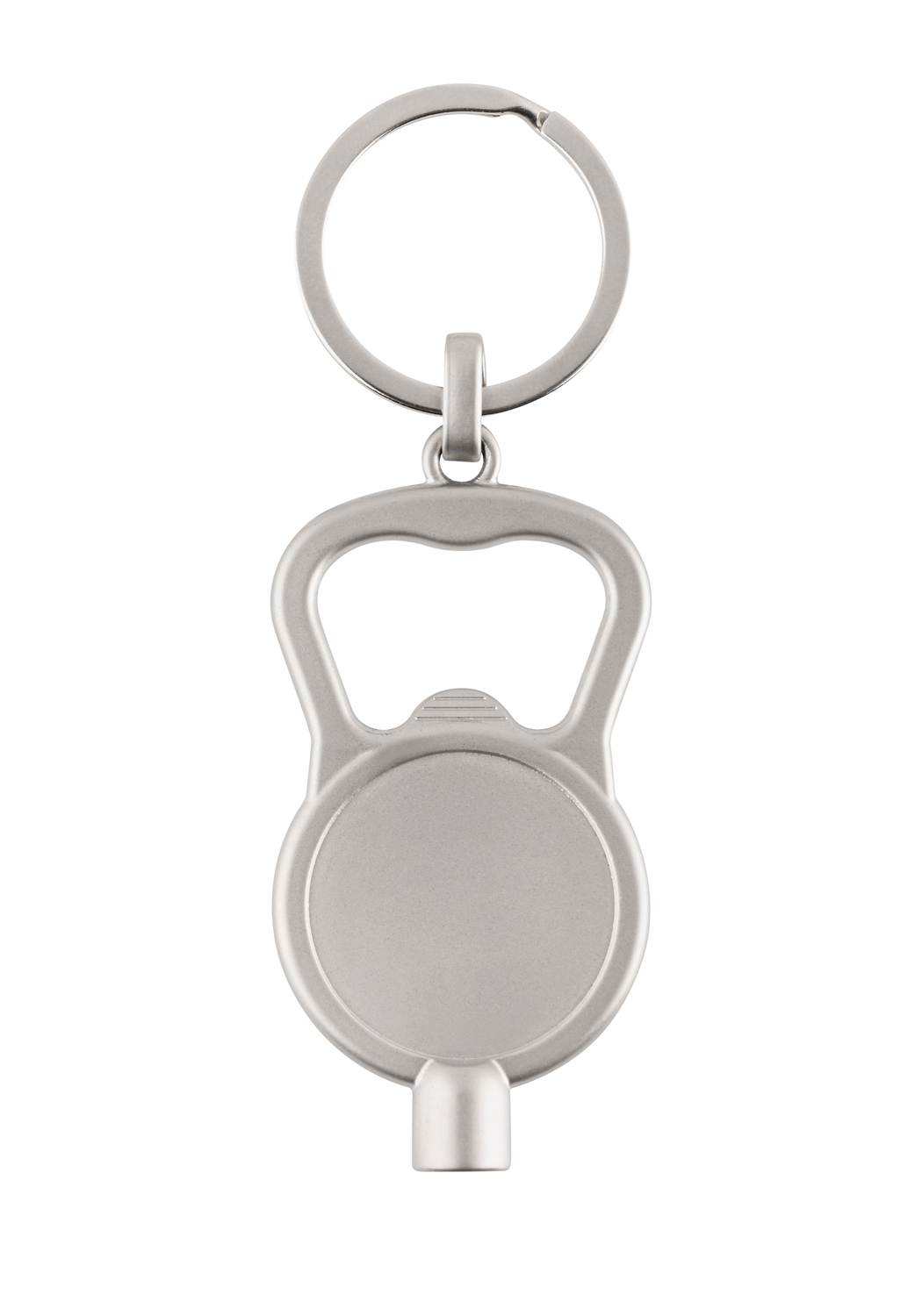 Metall Schlüsselanhänger mit 2 praktischen Funktionen - Kapselheber & Heizungsentlüfter - mattes Finish, mittels doming veredelbar. Im Kraftpapierumschlag.