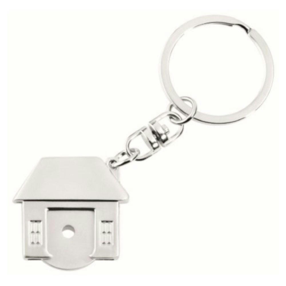 Metall-EK Chiphalter in Hausform mit Kapselheber. Auch kompatibel mit 1€ / 50 Cent Münze. Chip, 35mm Schlüsselring, Designkarton