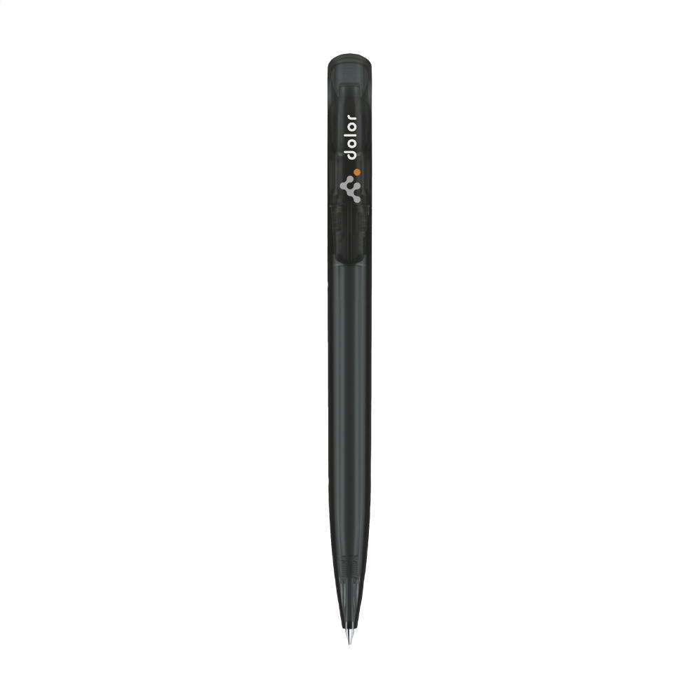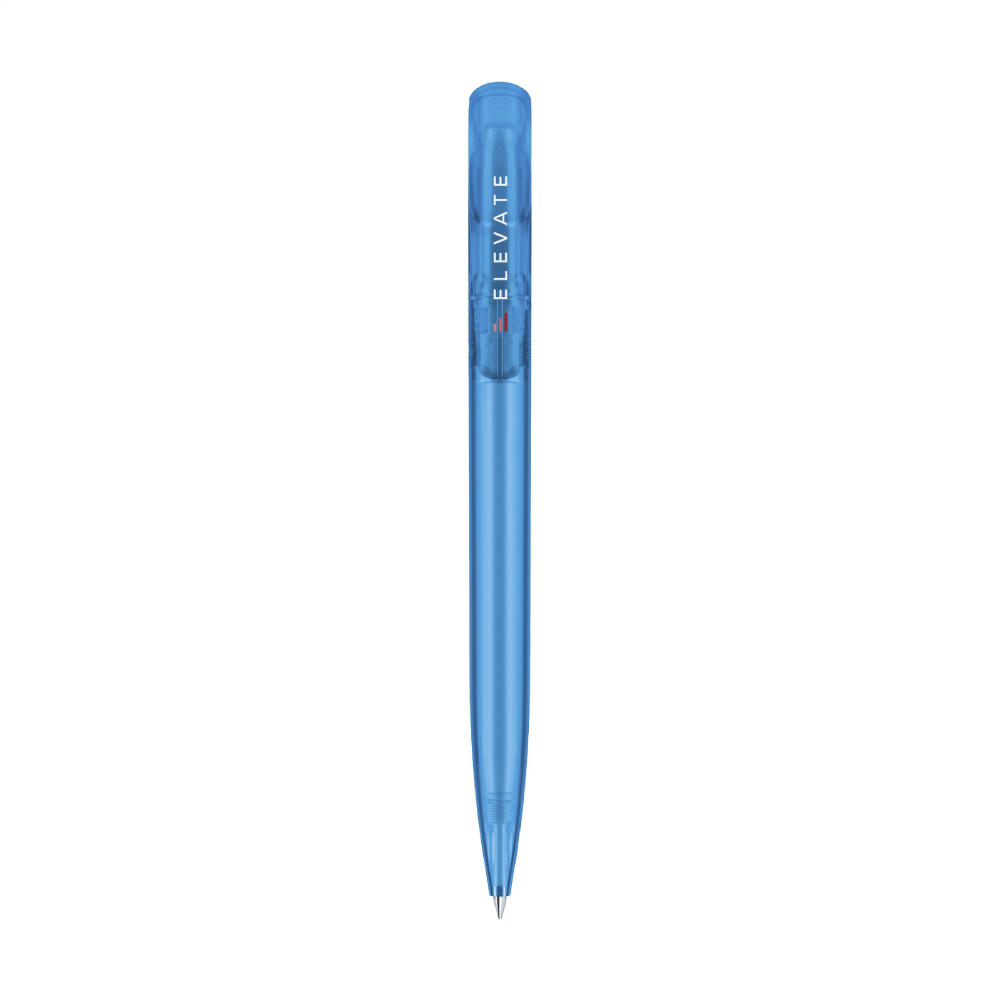 Blauschreibender Kugelschreiber der Marke Senator®. Mit einem transparenten Gehäuse und großzügigem Clip/Druckknopf.