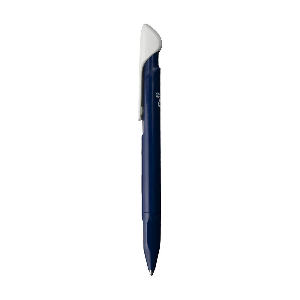 Blauschreibender Kugelschreiber der Marke Senator®. Hergestellt aus 95% recyceltem R-ABS-Material und wunderschön poliert. Der Stift fällt durch seinen ungewöhnlichen Clip und die durchdachte Spitze mit ergonomischem Griff ins Auge. Hergestellt in Europa. Leichte Unebenheiten in der Oberfläche des recycelten Materials sind möglich.