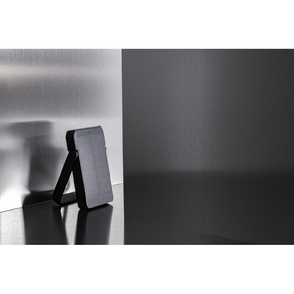 Solar-Powerbank aus RCS-zertifiziert recyceltem ABS. Gesamter recycelter Inhalt: 21% bezogen auf das Gesamtgewicht des Artikels. Die Powerbank verwendet hochwertige monokristalline Solarzellen mit einer Umwandlungsrate von 19%. Mit integrierter Standfunktion, um die Solarzellen in einem optimalen Winkel zu verwenden. Mit kabellosem, magnetischem 10W-Ladegerät zum kabellosen Aufladen Ihres Telefons. Aufladegeschwindigkeit Solar: 5V/130mA. Inout Type-C: 5V/2A. Output: USB A: 5V/2A; Type-C: 5V/2A. Artikel und Zubehör PVC-frei. Inklusive RCS-zertifiziert recyceltem TPE-Ladekabel.