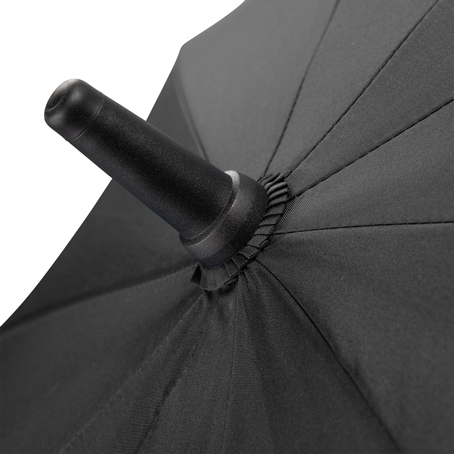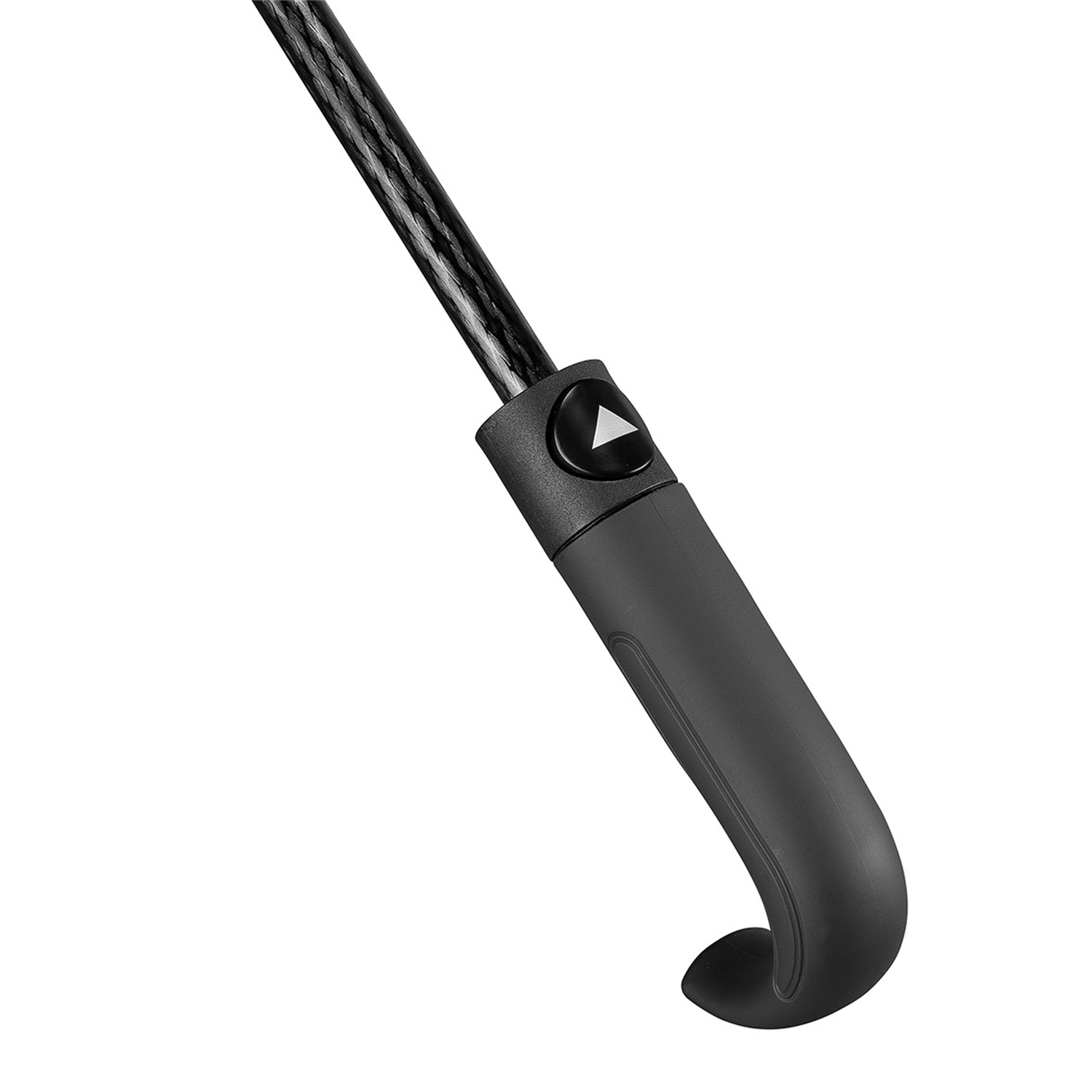 Dieser Schirm aus hochwertigem 190T rPET-Pongee überzeugt durch seine Strapazierfähigkeit und Umweltfreundlichkeit. Mit einem Durchmesser von ca. 122 cm bietet er optimalen Schutz vor Wind und Regen. Der Schirm lässt sich dank der Automatik-Funktion mühelos öffnen und schließt auf eine Länge von ca. 90 cm. Die 10 Segmente sorgen für besonders hohe Stabilität, während die Windproof-Funktion ihn selbst bei stärkeren Böhen zuverlässig schützt. Der gebogene Handgriff in J-Form, PU-beschichtet und in der Farbe der Bespannung, liegt angenehm in der Hand und rundet das elegante Design ab.