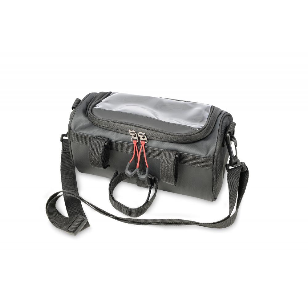 Fahrradtasche für den Lenker, flexible Befestigung mittels 3 Klettverschlussbändern am Lenker, geräumiges Hauptfach mit Reißverschluss, inkl. Netzfach (z.B.: für Powerbank), Touchscreen-Sichtfenster passend für gängige mobile Geräte zur Navigation, seitlich geöffnet zum Hauptfach (Laden via Powerbank), abnehmbarer, verstellbarer Schultergurt, Schlaufe zur Befestigung des Vorderlichts, Kapazität ca. 4 Liter, Tragkraft bis zu 5 kg, schützt Inhalt vor Spritzwasser (Wasserdichtheitsgrad IPX4) , formstabil durch verstärkte Kanten.