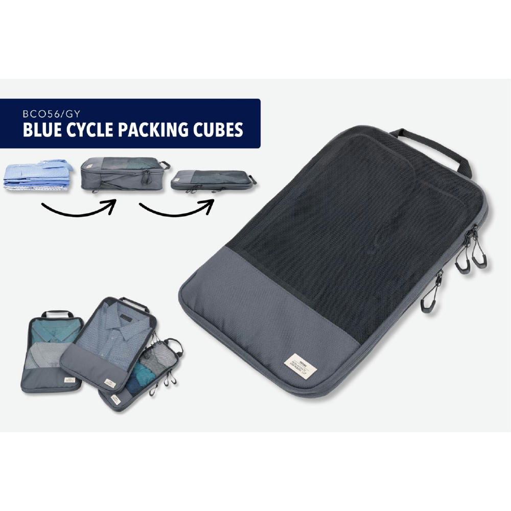 TROIKA Reise-Kompressionstaschen Set "Blue Cycle Packing Cubes"