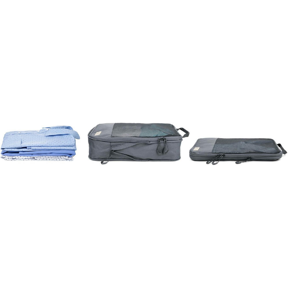 Dreiteilig für verschiedene Kleidungsstücke: Größe L für Hemden & Hosen, Größe M für Shirts und Größe S für Socken und Wäsche – für platzsparendes, geordnetes und knitterfreies Packen von Kleidung in Koffer & Rucksack. Durch Verschließen des Netzfach-Reißverschlusses wird der Inhalt vollständig komprimiert.