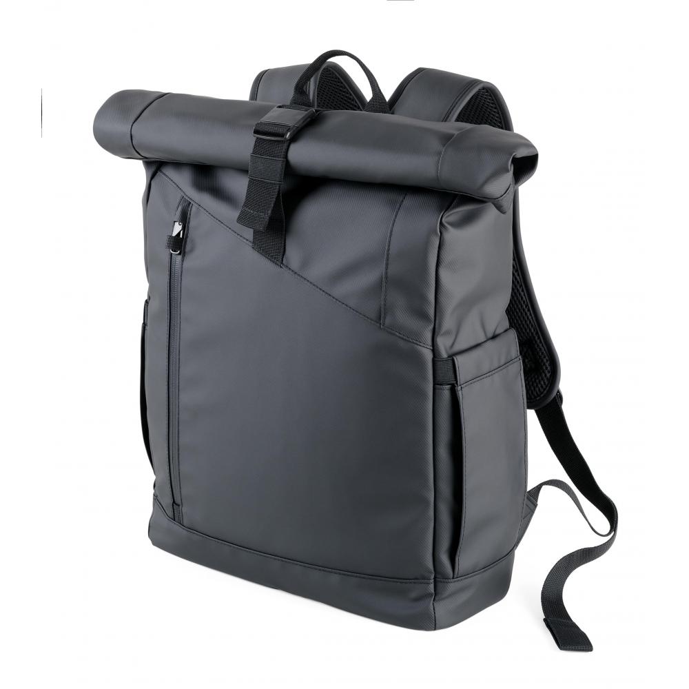 Roll Top Rucksack mit magnetischem Sicherungsverschluss aus Metall, wasserabweisende Reißverschlüsse außen, Hauptfach: 1 Reißverschlussfach inkl. Geheimfach für mini Tracking-Geräte (z.B. APPLE AirTag® Ortungsknopf) + 2 Einschubfächern mit Klettverschluss, Fronttasche mit versteckbarem Reißverschluss-Schieber als Mini-Karabiner (Diebstahlschutz), 2 Seitentaschen, rückseitiges Geheimfach, gepolsterte Schultergurte, Schlaufe zur Befestigung am Trolley, abgesetzter Standboden, Kapazität ca. 17,5 Liter, Tragkraft bis zu 15 kg, widerstandsfähiges Material, spritzwassergeschützt (Wasserdichtheitsgrad IPX4).