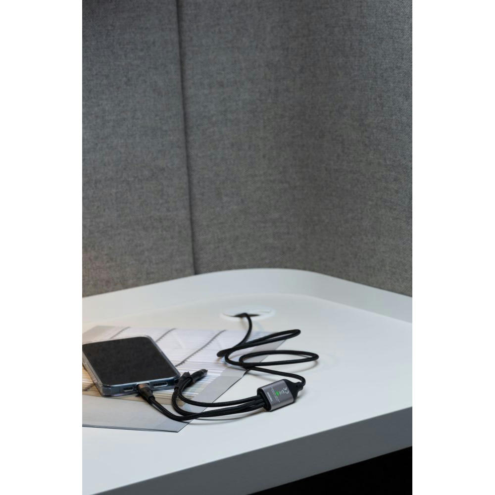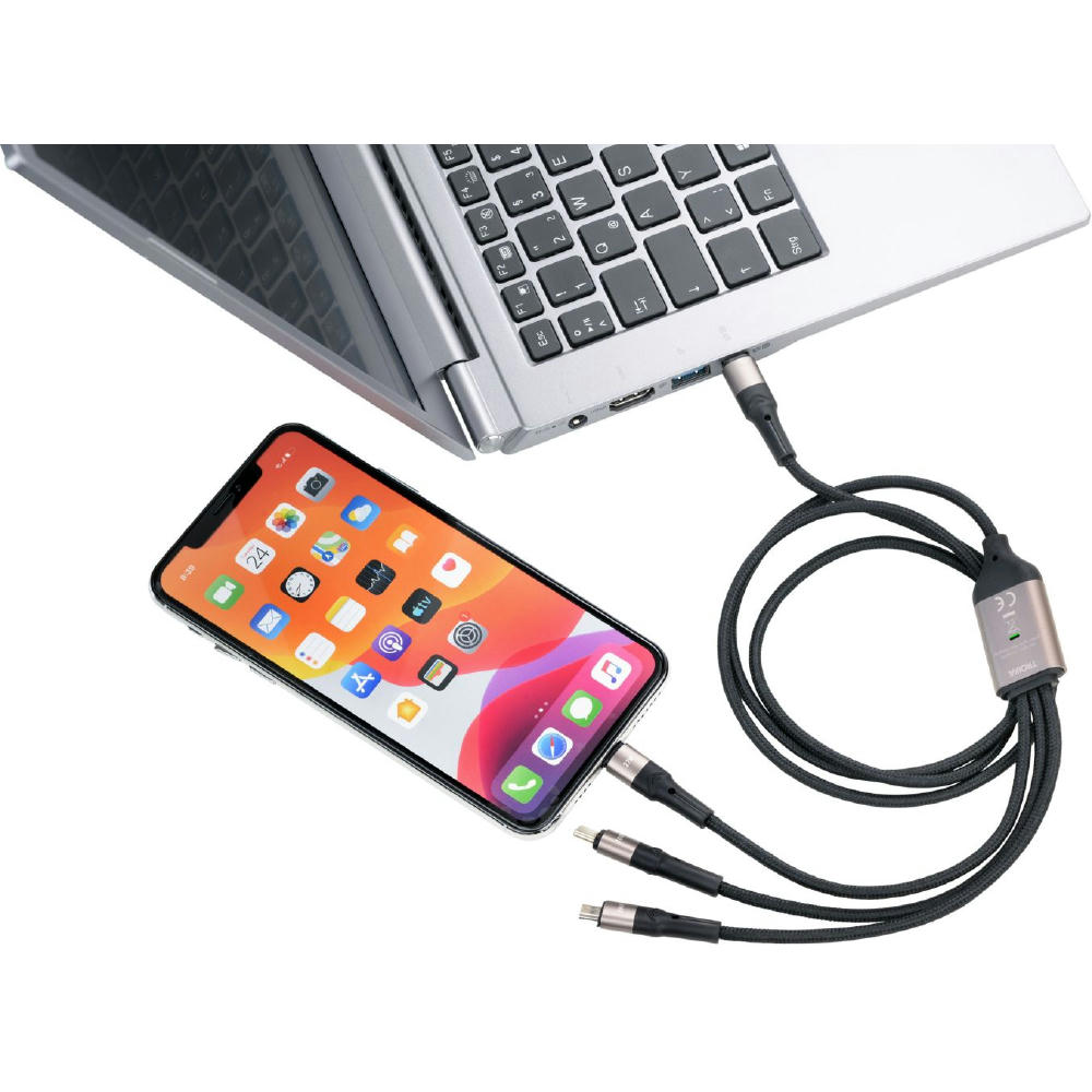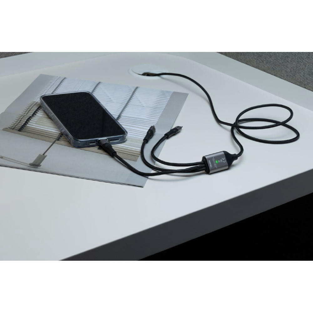 Schnellladekabel 3 in 1 für gleichzeitiges Laden von bis zu 3 Geräten, USB-C auf Micro-USB/Lightning/USB-C, mit Datenübertragungsfunktion, Kabellänge 1,23m.