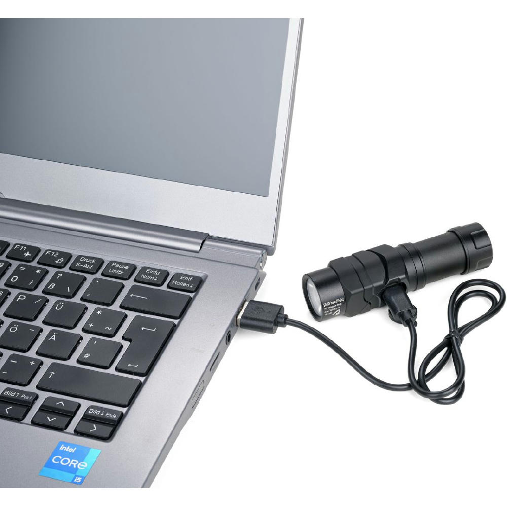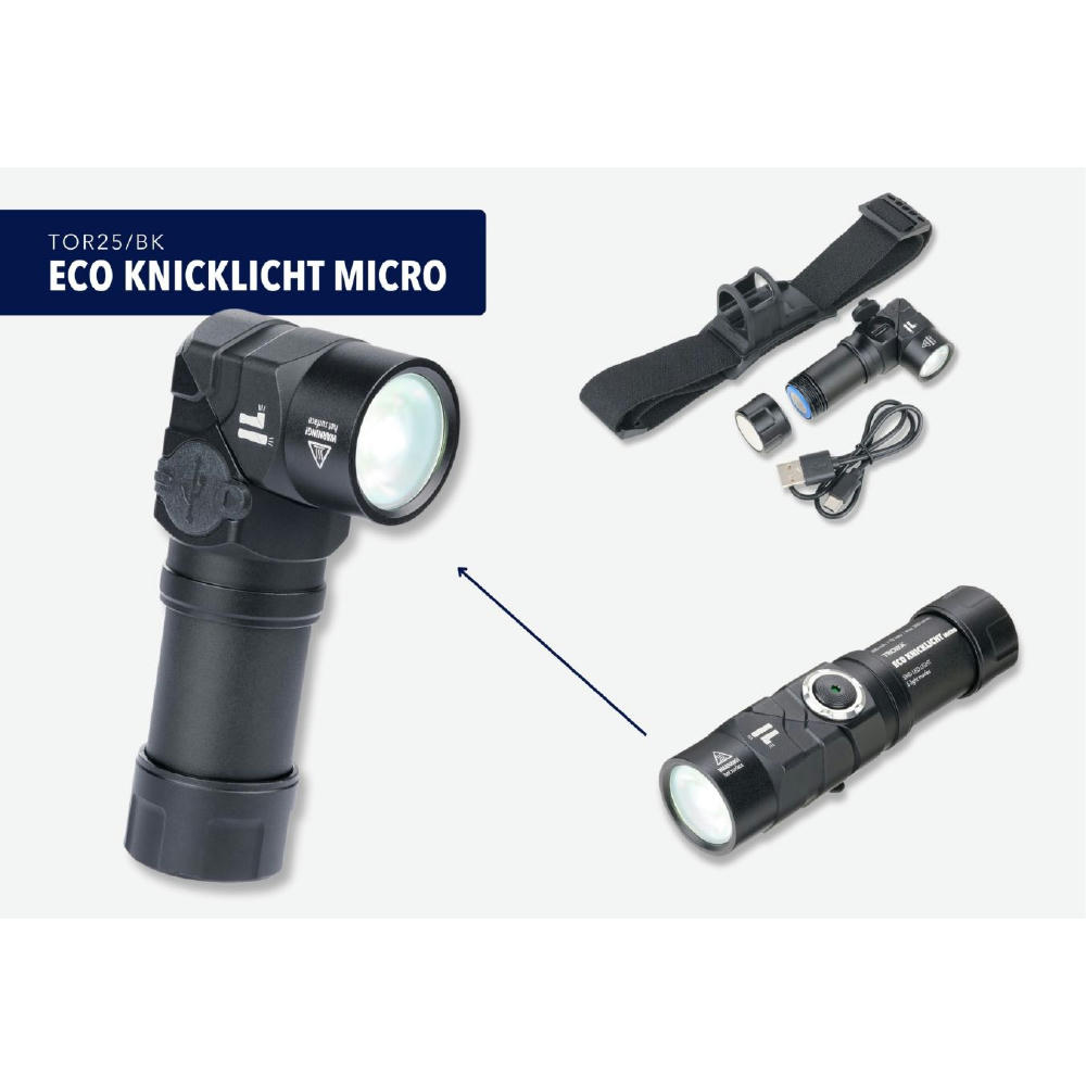Taschenlampe / Knicklampe, multifunktional: Arbeits-, Sicherheits-/ und Stirnlicht, 5 Leuchtfunktionen, Frontlampe: 100% Licht + 50% Licht + 30% Licht, rotes Licht, schnell blinkendes rotes Licht, Leuchtkopf um bis zu 90° abknickbar für optimales Ausleuchten, Mini Power Knicklicht: 100% = 500 Lumen, Magnetboden, SMD LED`s wiederaufladbar über mitgeliefertes USB-C Kabel, Ladeanzeige. Inklusive Kopfband zur Stirnlampenfunktion und 800 mAh Lithium Ionen Akku.
