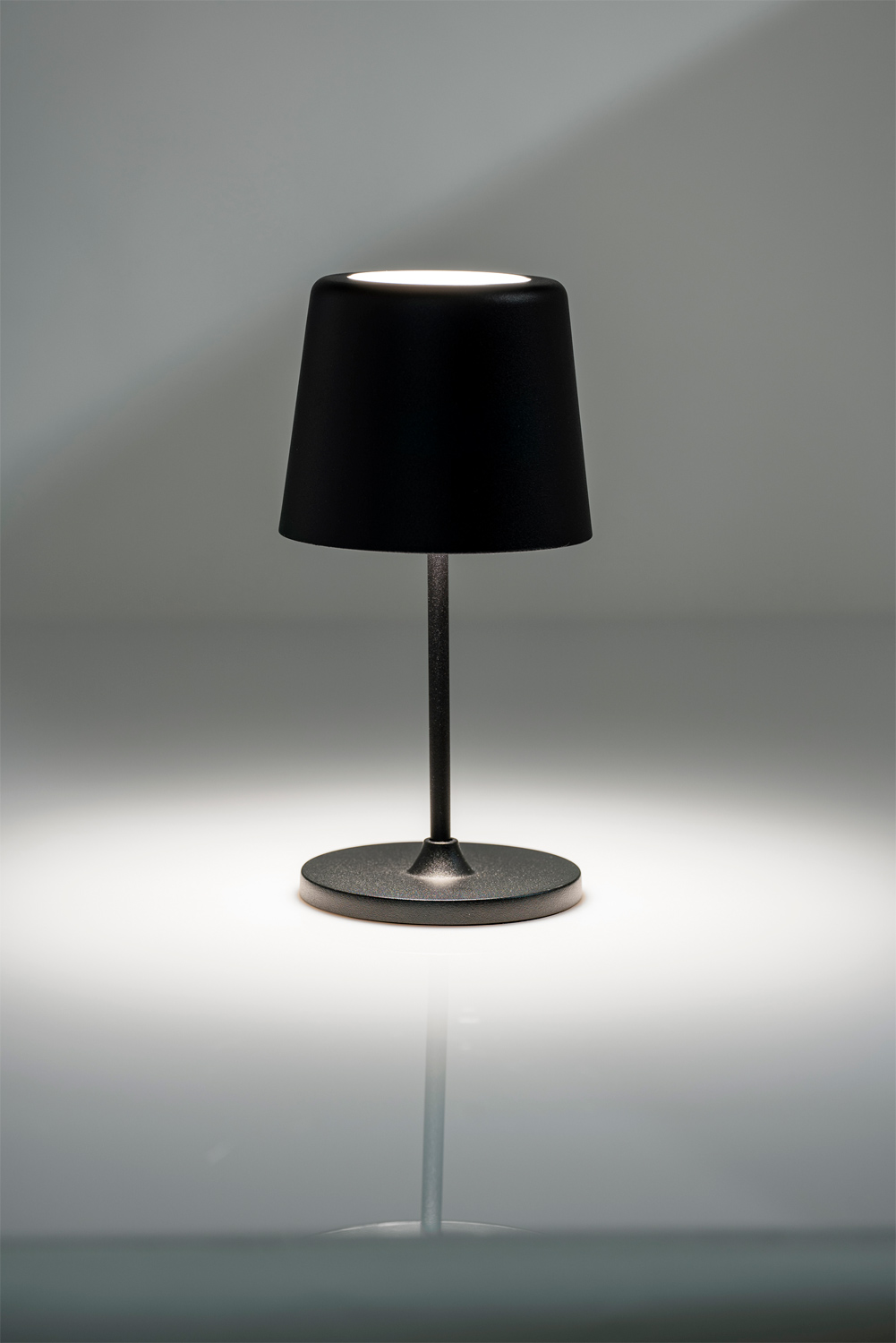Dimmbare Tischleuchte mit teilbarem Mast sowie Flaschenhalsadapter. IP44 Spritzwasserschutz für Innen und Außen. 200 Lumen, 3W, 2600mAh Batterie.