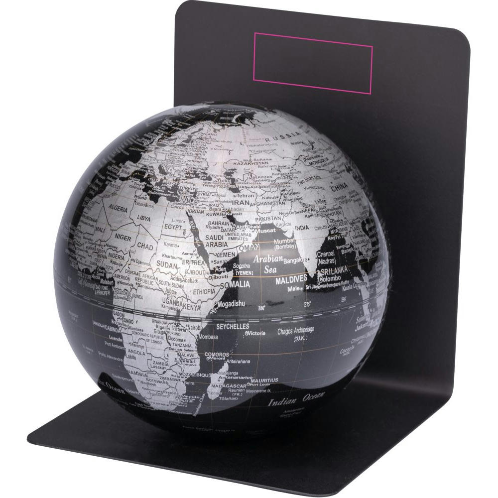 Globus mit Buchstütze aus Metall, magnetischer Globus mit 13 cm Durchmesser, Kunststoff, Metall, matt, schwarz/silberfarben.