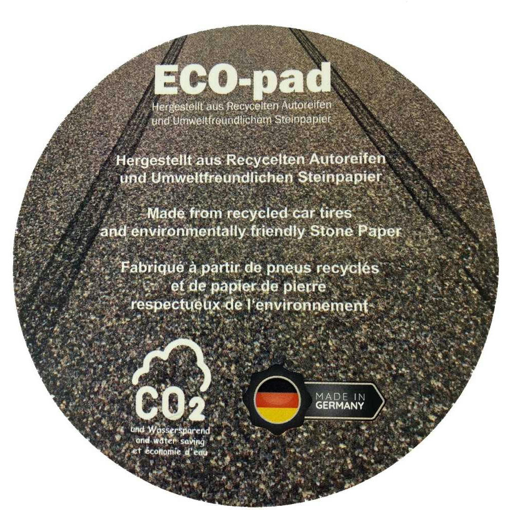 Unterseite: aus 100 % in Deutschland recycelten Autoreifen, Oberfläche: 0,3 mm umweltfreundliches Steinpapier