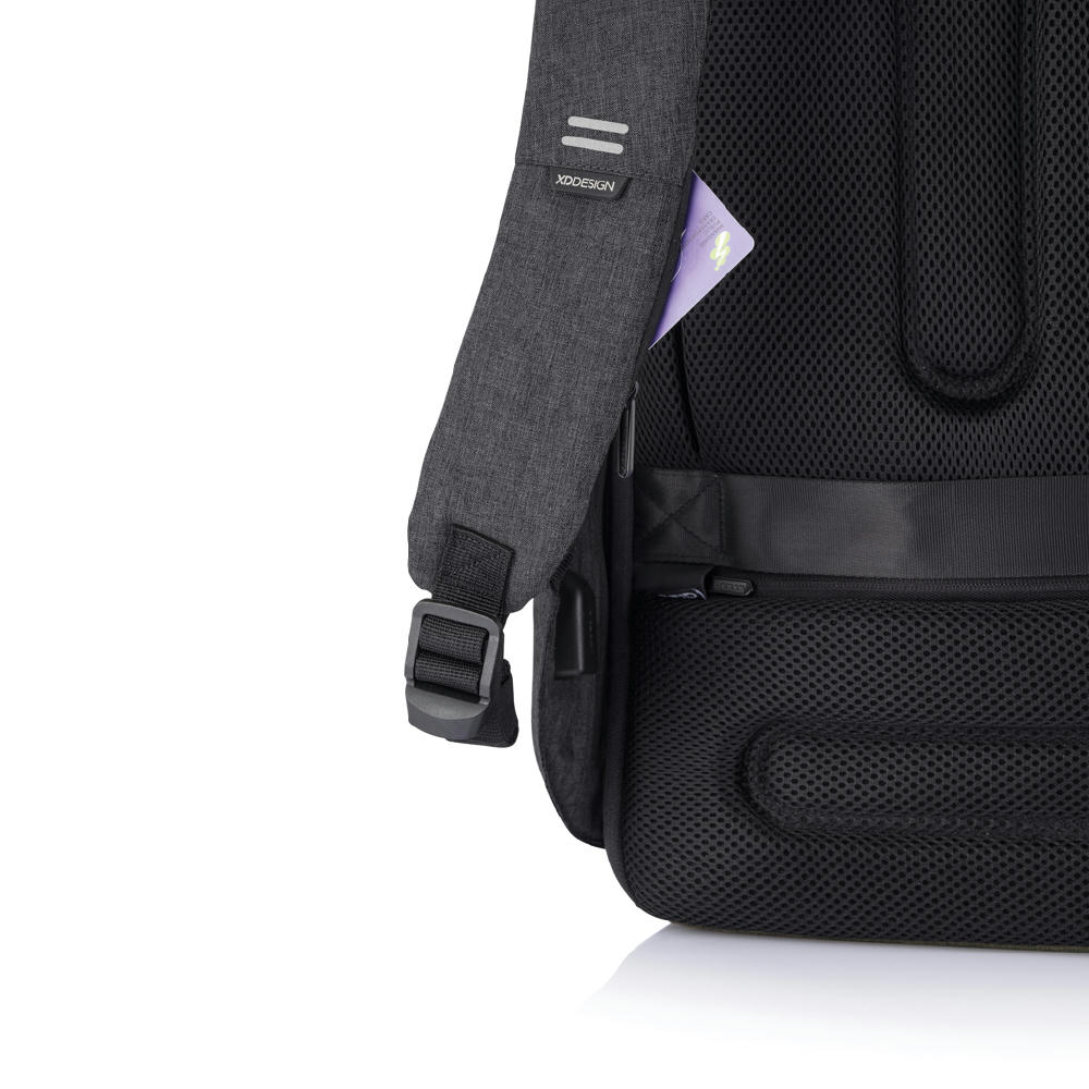 Die Bobby Hero-Linie repräsentiert eine neue Ära der Anti-Diebstahl-Rucksäcke und bietet Sicherheit, Komfort und Organisation für Ihre täglichen Reisen. Schnittfester Schutz, diskrete Reißverschlüsse und verdeckte Taschen sorgen für die Sicherheit Ihrer Habseligkeiten während des Pendelns. Der Bobby Hero Small ist mit einem integrierten USB-Ladeanschluss, wasserabweisendem Material, leuchtenden Sicherheitsstreifen und einem Trolleyriemen für zusätzlichen Komfort ausgestattet. Im Inneren befinden sich gepolsterte Fächer für einen 13,3"-Laptop und ein Tablet bis zu 12,9". Hergestellt aus rPET-Gewebe mit dem AWARE™-Tracer, der die Verwendung von tatsächlich recyceltem Material garantiert. 25% recycelter Inhalt. Registered Design®