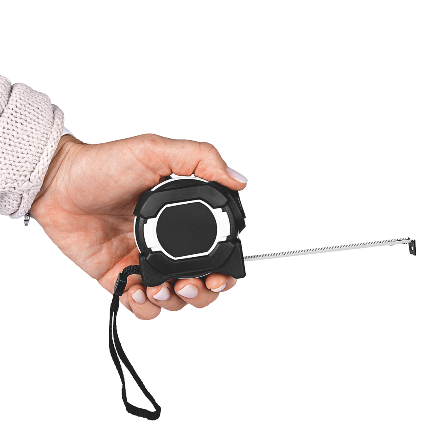 Stabiles und robustes Qualitäts-Bandmaß aus schlagfestem 2-Komponenten-Gehäuse. Durch die Aussparung im Haken kann das Stahlband in einen Nagel oder eine Schraube eingehängt werden. Knickfestigkeit: 1,80 m. Skalierung: cm, einseitig. Genauigkeitsklasse: EG-Klasse II. Ausstattung: dynamischer Bandrücklauf, beweglicher Bandanfangshaken, Gürtelclip und Handschlaufe. Verpackung: schwarze Geschenkverpackung.