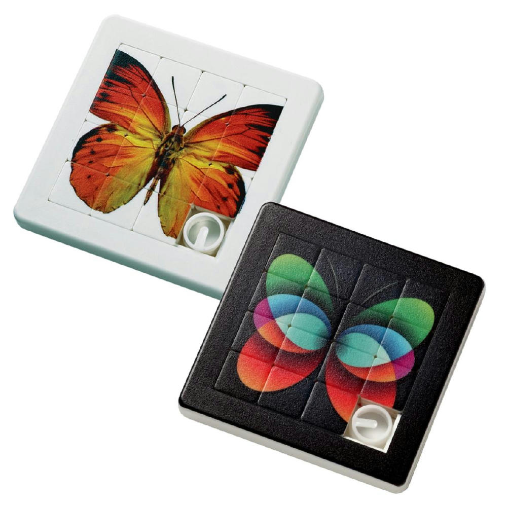 Kniffliges Schiebespiel mit 15 beweglichen Teilen und 1 Stopper. Individuell mit bis zu 4 Farben bedruckbar. Große und wirkungsvolle Werbefläche.