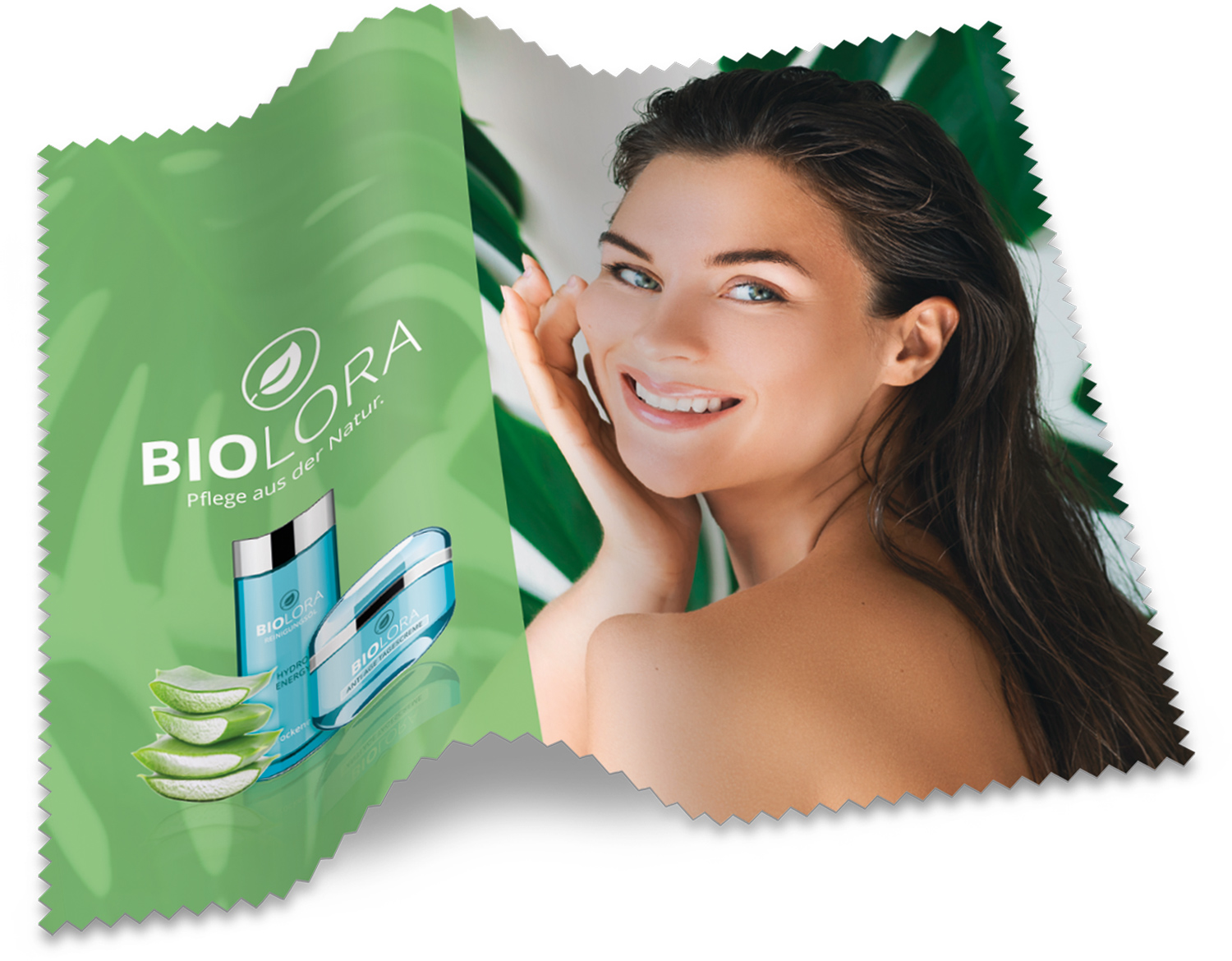 Microfasertuch aus rPET zur streifenfreien Reinigung von z.B. Brillen, Optiken, Displays. Made in Germany. Einzeln im recycelbaren Pergaminbeutel verpackt. Papieretui gegen Aufpreis möglich. Weitere Formate auf Anfrage. Preis inkl. 4c-Druck, Druckvorlauf- und Versandkosten an eine Adresse in Deutschland auf dem Festland.