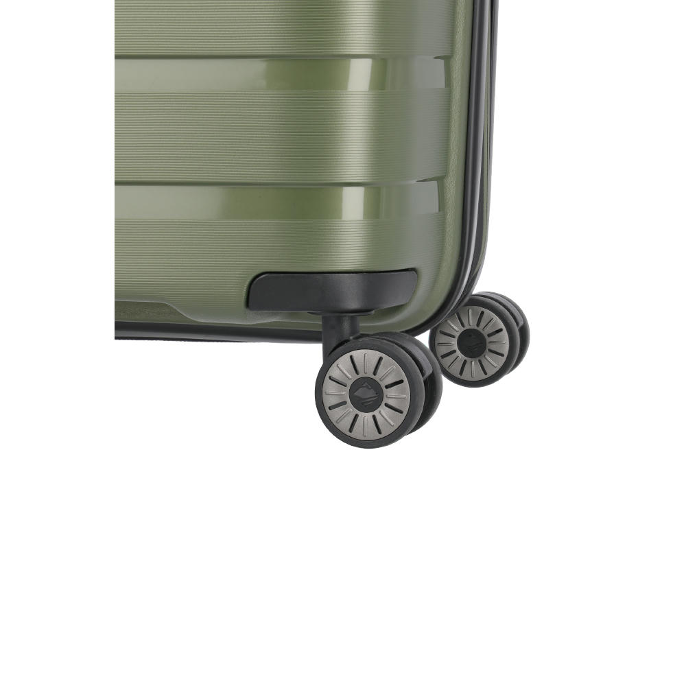 Details und Funktionen: * Aus widerstandsfähigem Polypropylen * Nahezu unverwüstlich * Einzigartige Oberfläche mit Wechselspiel aus rauen und glänzenden Elementen * Versenktes TSA-Kombinationsschloss * Vier Doppelrollen * Stabiles, arretierbares Teleskopgestänge * Hochwertiges Innenfutter * Elastische Packgurte * Beidseitige Packwände mit zusätzlichen Reißverschlusstaschen